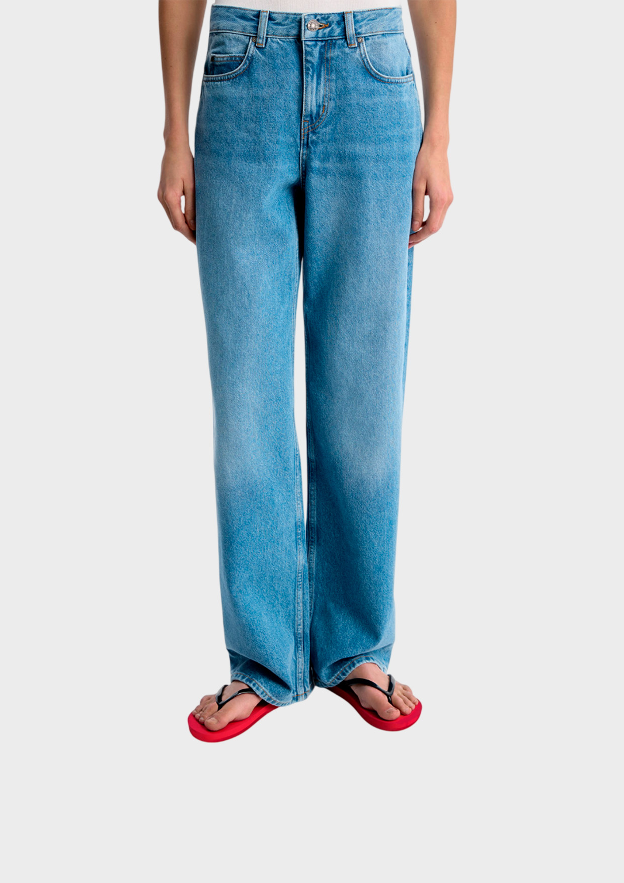Джинсы свободного кроя, аккуратно облегающие бедра — один из наших фитов-бестселлеров. Базовая модель на высокой посадке. Свободные брючины немного расширяются к низу. Изделие дополнено пятью карманами. Застегивается на молнию и металлическую пуговицу.