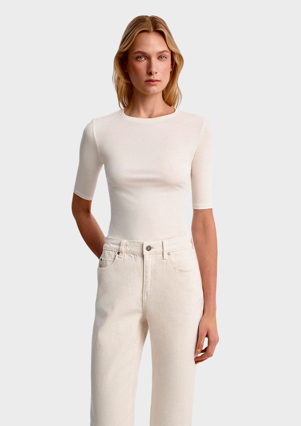 Облегающая футболка с удлиненным рукавом создана для тех, кто ценит мягкость, комфорт и точную посадку. Модель ощущается как «вторая кожа»: она деликатно повторяет контуры тела, обеспечивая комфорт и легкость при носке.