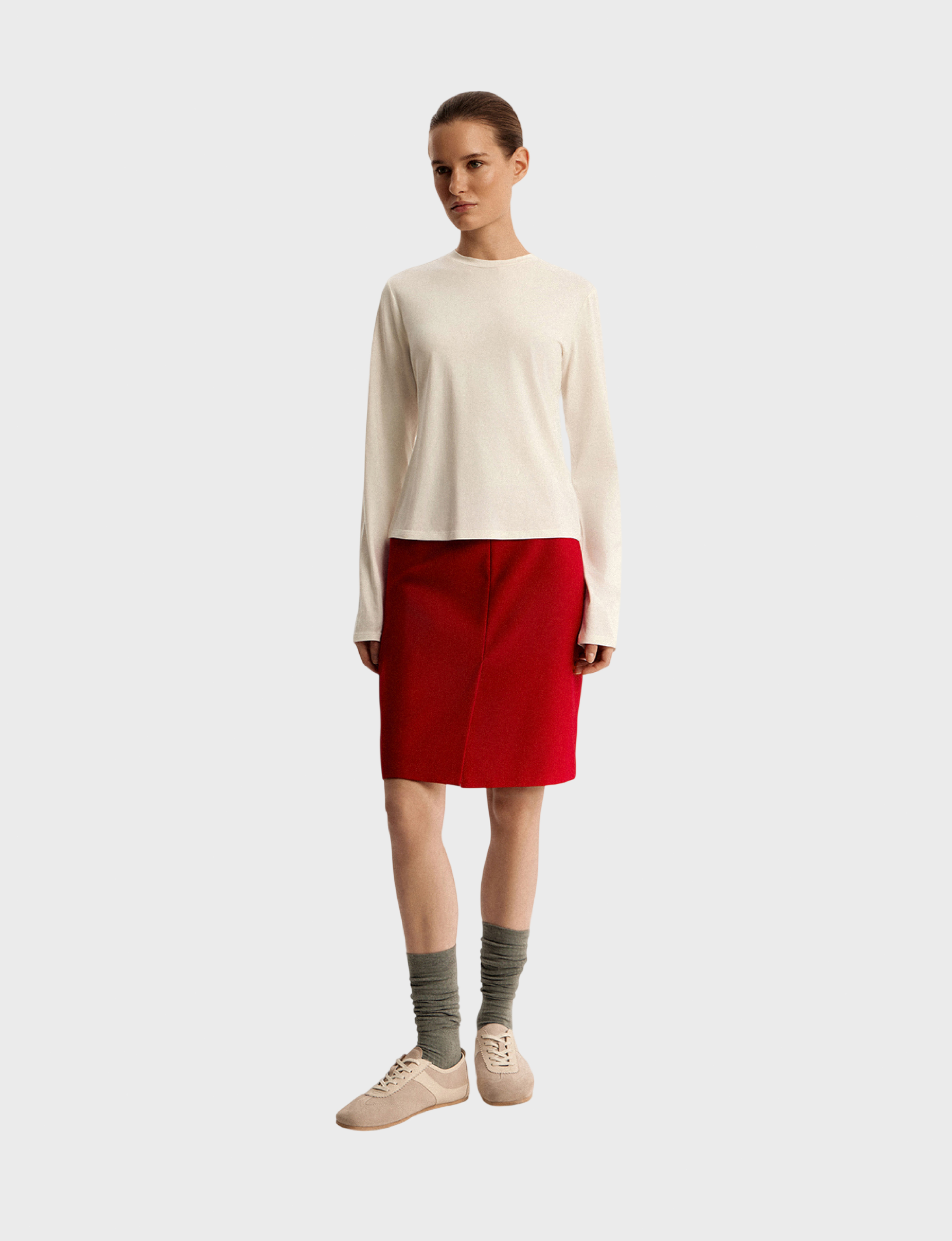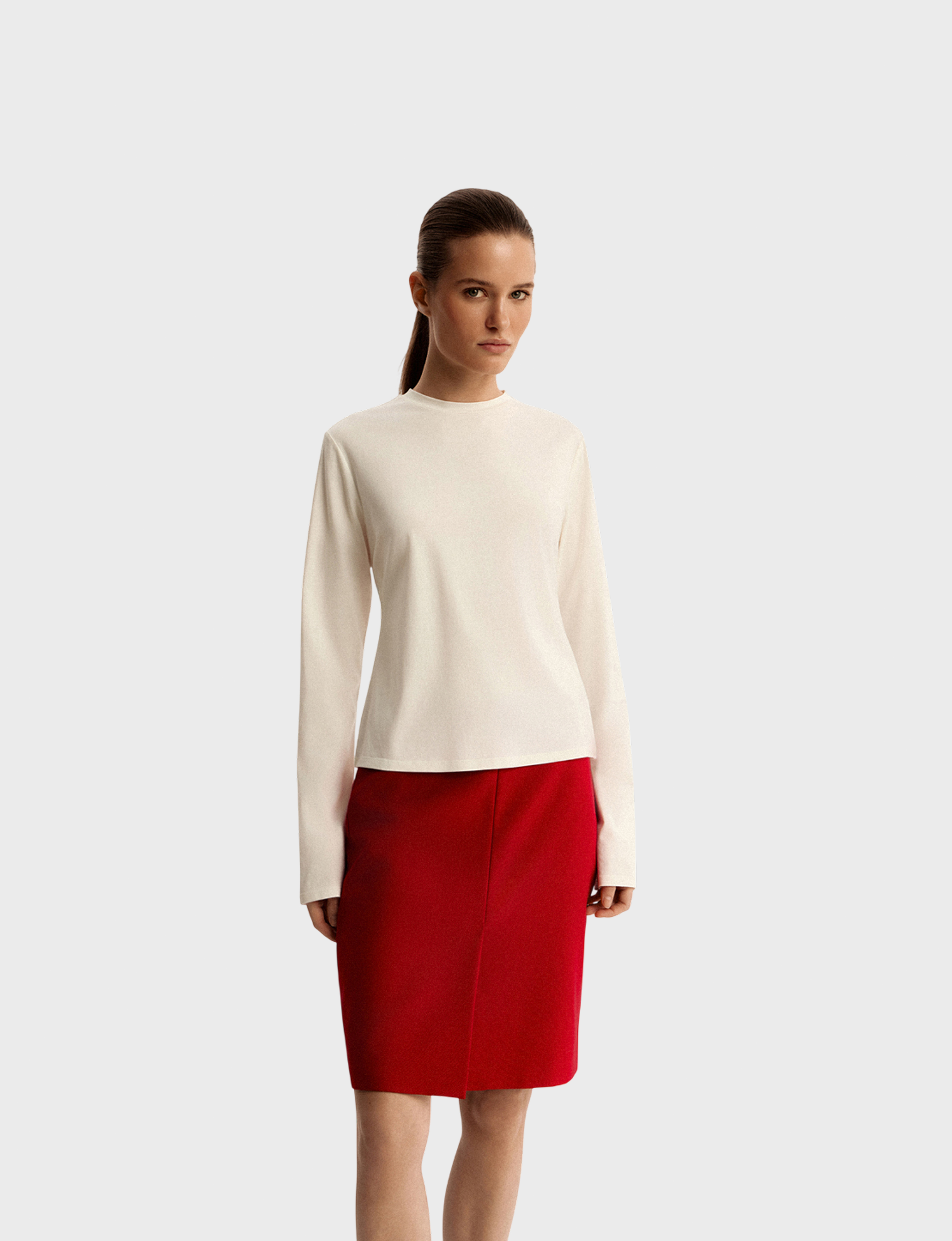 Базовая модель с лаконичным кроем из высокотехнологичного гибридного трикотажа, сочетающего натуральные и современные волокна.