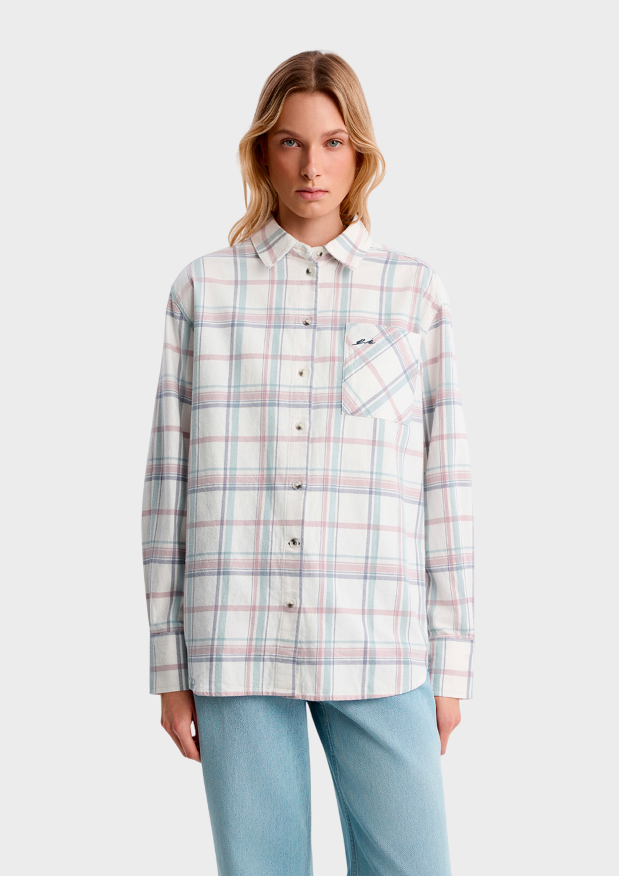 Универсальная рубашка в клетку Relaxed из 100% хлопка создана для ежедневных образов. Модель с умеренно свободным силуэтом и слегка приспущенной линией плеча. На нагрудном кармане — фирменная вышивка 2M, на спинке — аккуратный логотип 2MOOD. Рубашка застегивается на брендированные пуговицы.