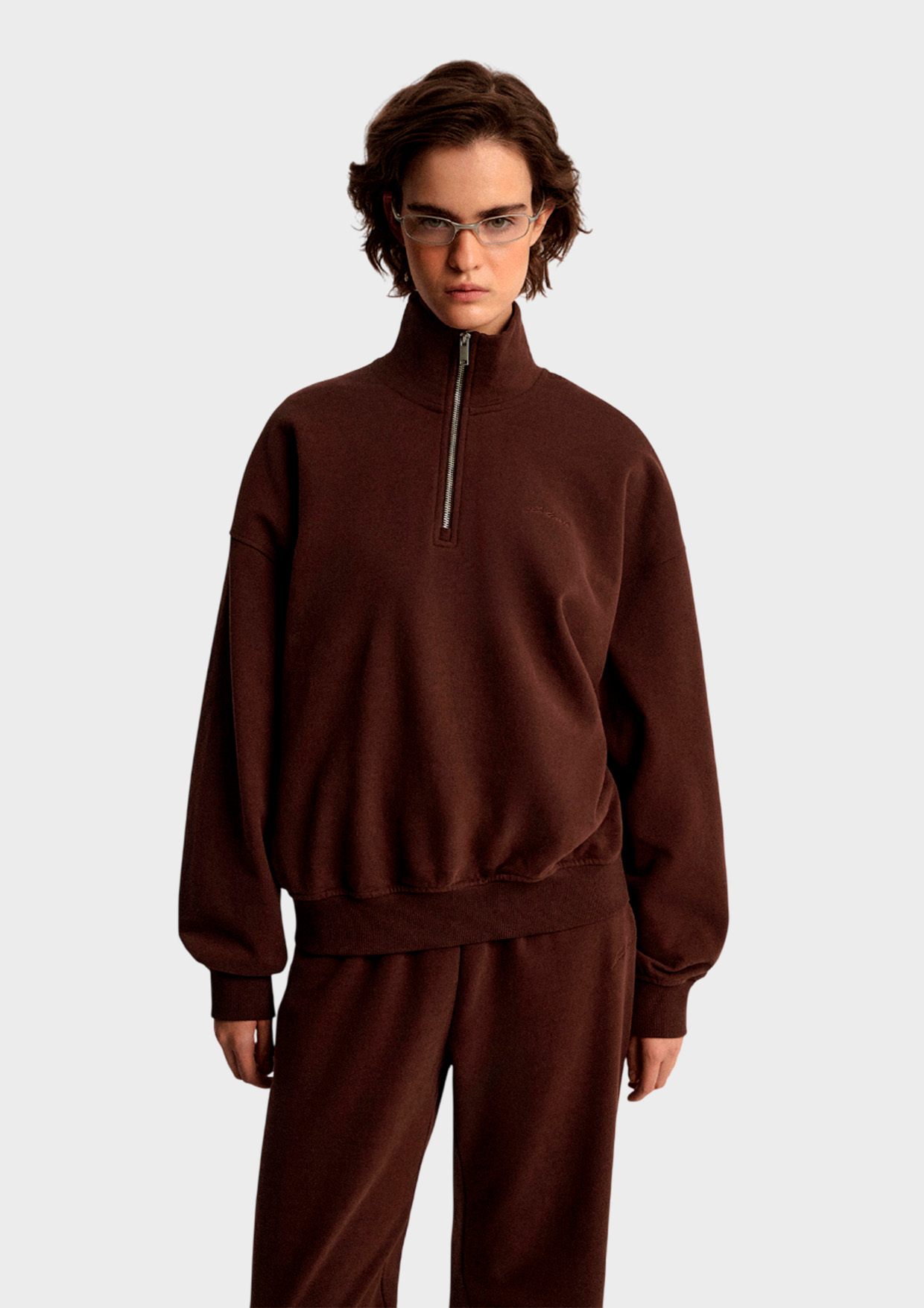 Модель выполнена из натурального хлопка. Свободный силуэт со спущенной линией плеча и объемными рукавами обеспечивает свободу движений.
