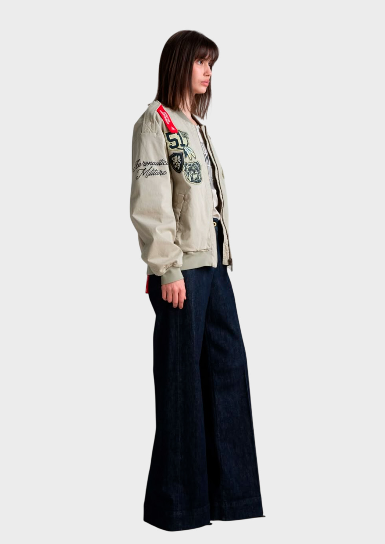 Женская куртка-бомбер от бренда AERONAUTICA. Зелёный цвет подчеркнёт индивидуальность. Комфортное сочетание хлопка и эластана. Стильный дизайн с нашивками и стразами идеально дополнит ваш образ.