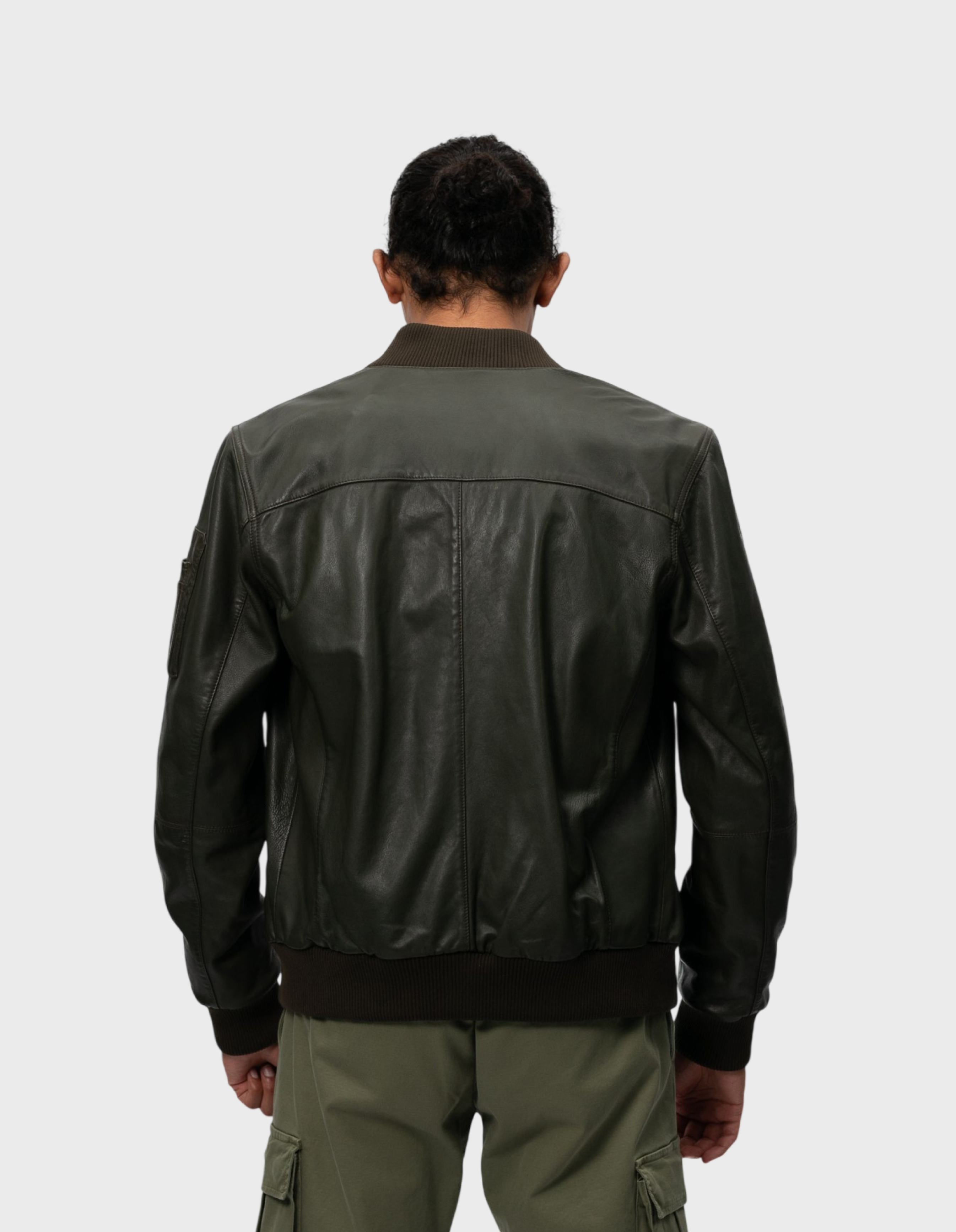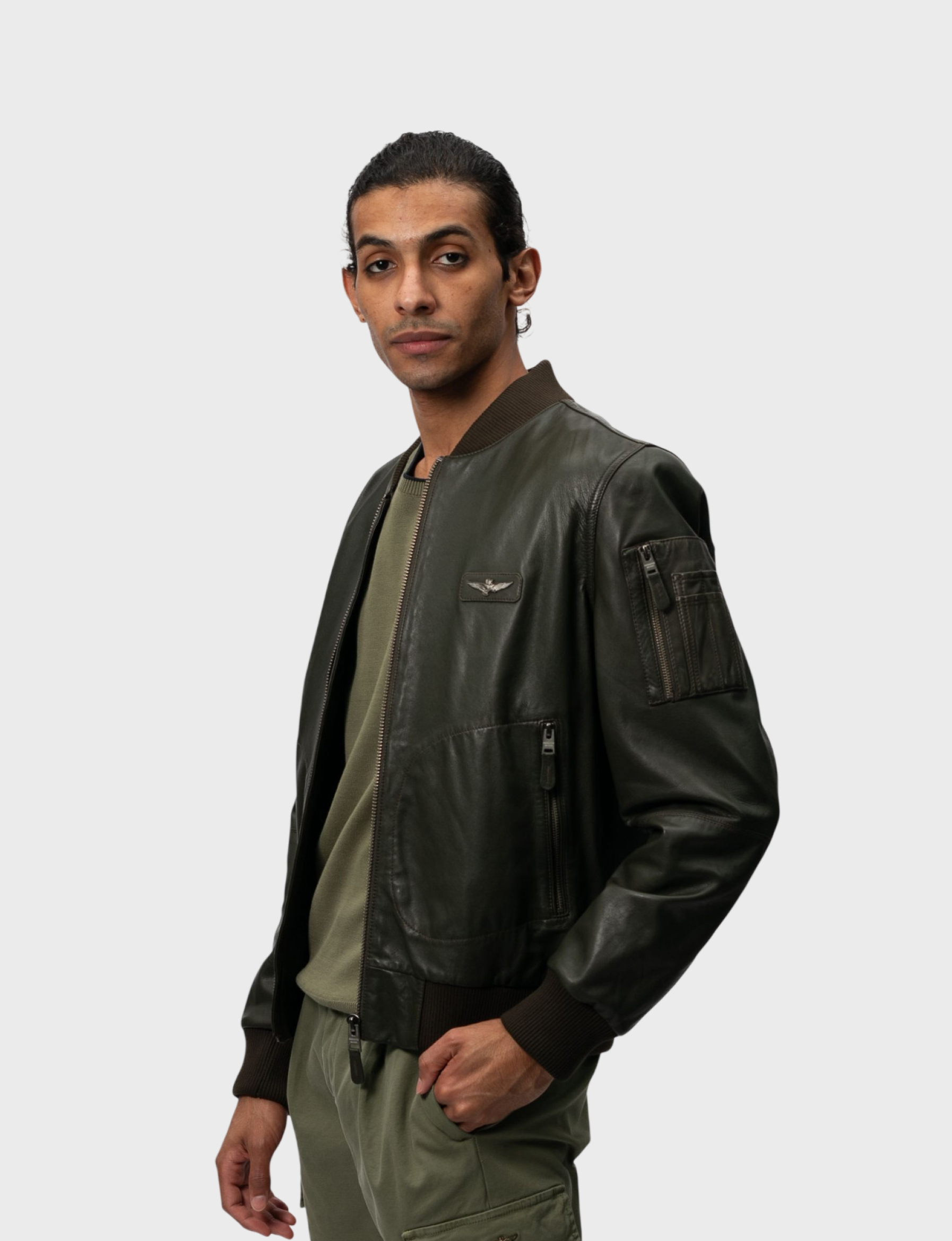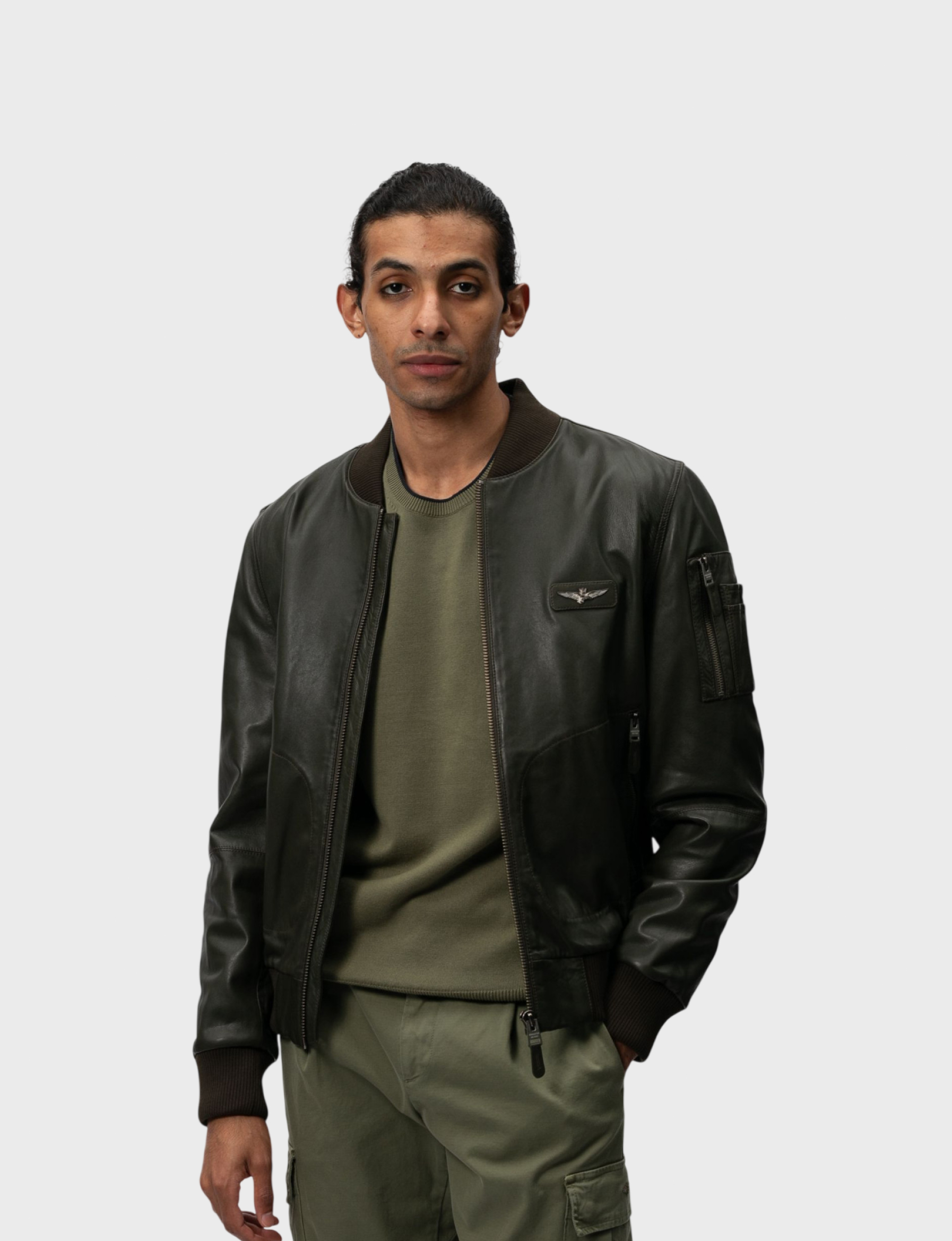 Мужская куртка-бомбер от бренда AERONAUTICA – Эта модель выполнена из качественной 100%-ной кожи тёмно-зеленого цвета, который подчеркнет ваш статус и безупречный вкус. Комфорт, практичность и современный дизайн делают её идеальным выбором как для повседневного образа, так и для особых случаев.