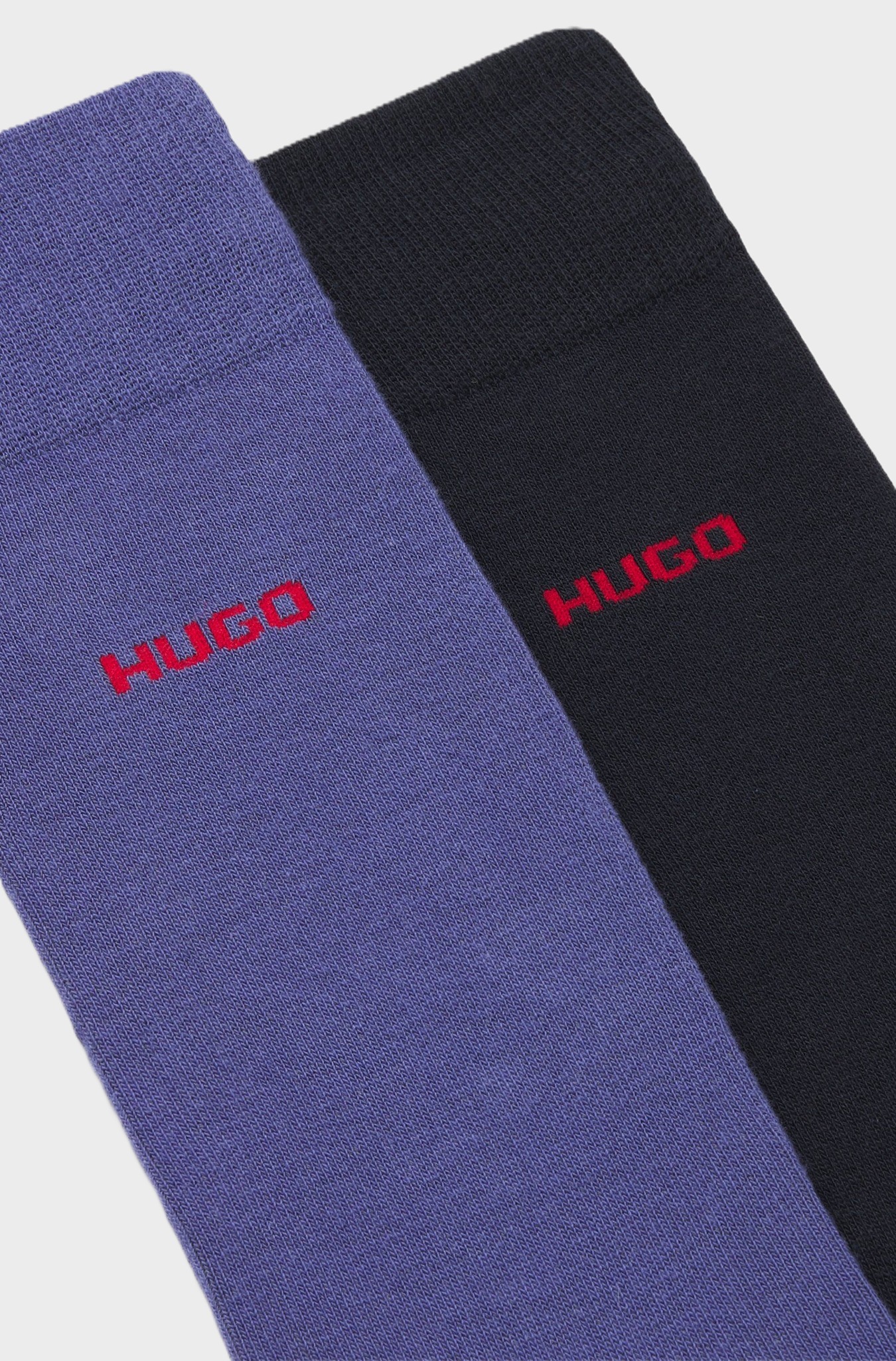 Пара сверхмягких носков от HUGO. Эти фирменные носки обычной длины для повседневного использования выполнены из хлопковой пряжи, содержащей стрейч, который надолго сохраняет форму. Фирменный знак HUGO придает особый вид.