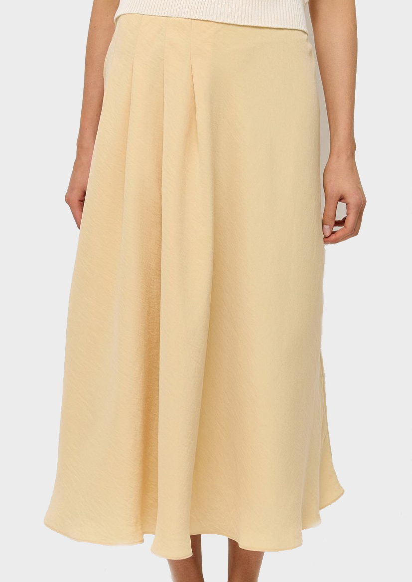 Юбка-миди сшита из купры с жатым эффектом. Это редкий вид натуральной вискозы высокого качества, легкой и нежной на ощупь ткани.