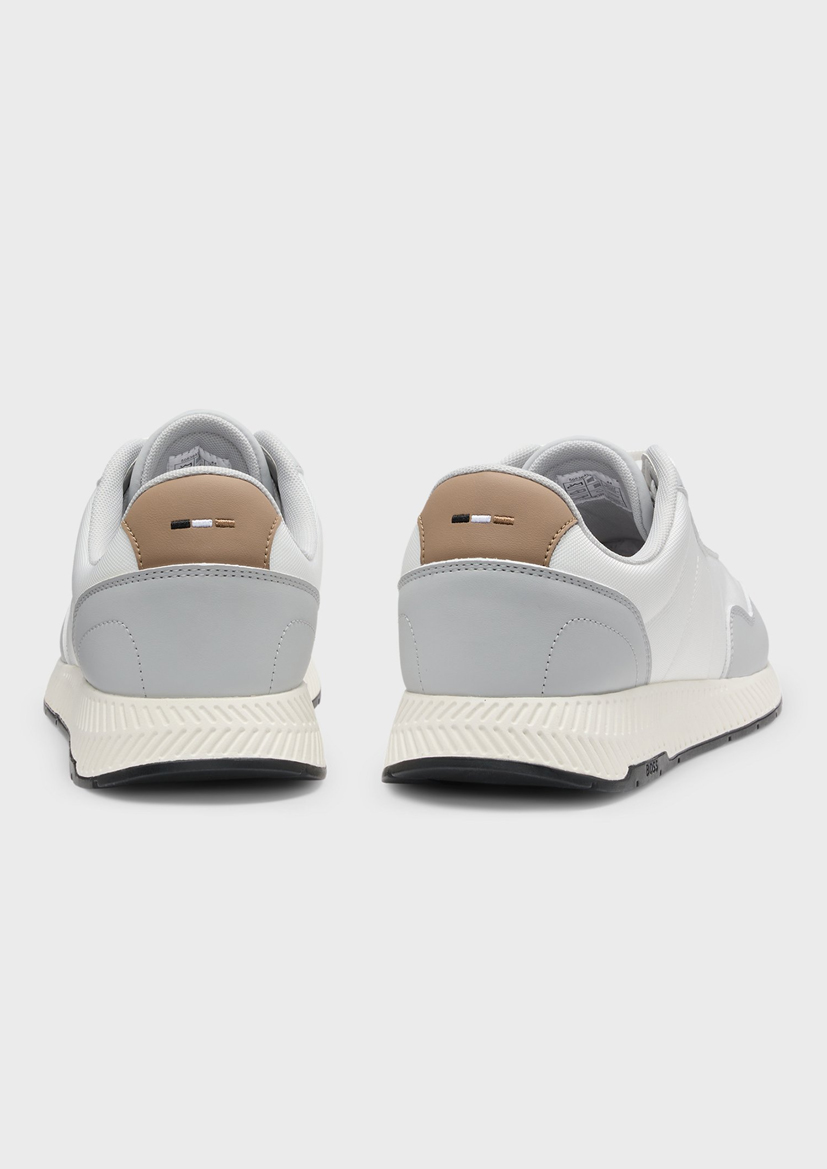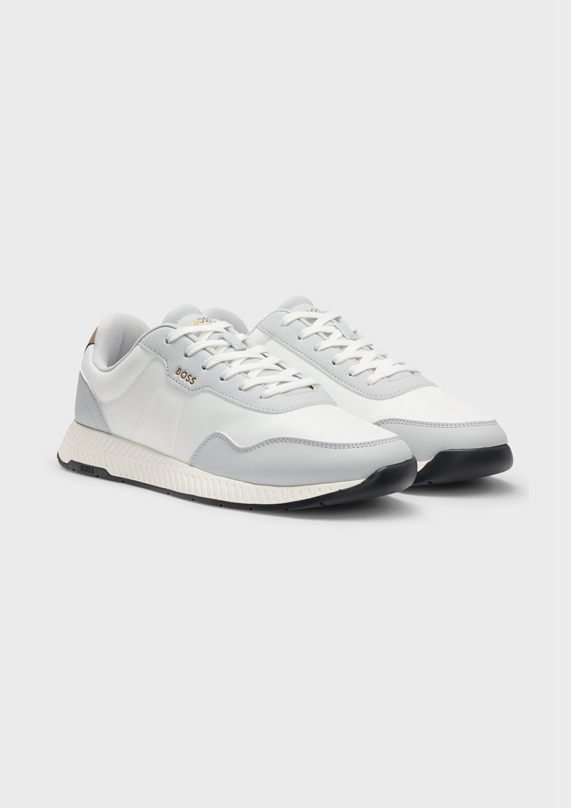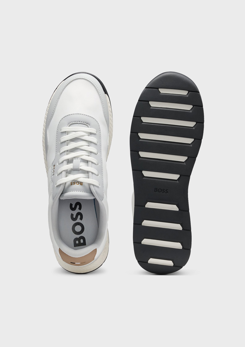 Мужские кроссовки BOSS с логотипом и фирменной строчкой в полоску придают повседневным образам особую изюминку. Комбинированный верх из текстурированных и гладких тканей.