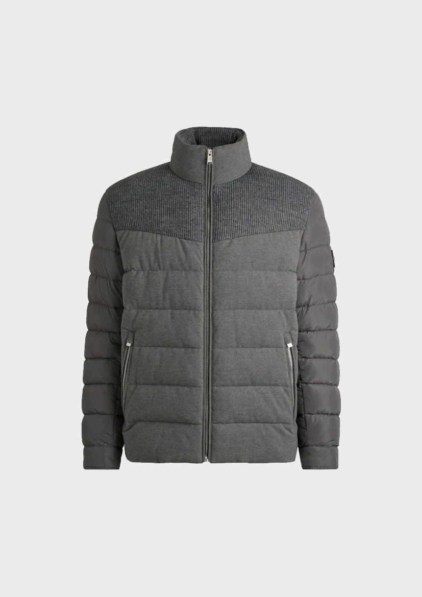 Водоотталкивающая куртка от BOSS, изготовленная из смешанных материалов. Эта модель из структурированной ткани со смесью шерсти имеет свободный крой.