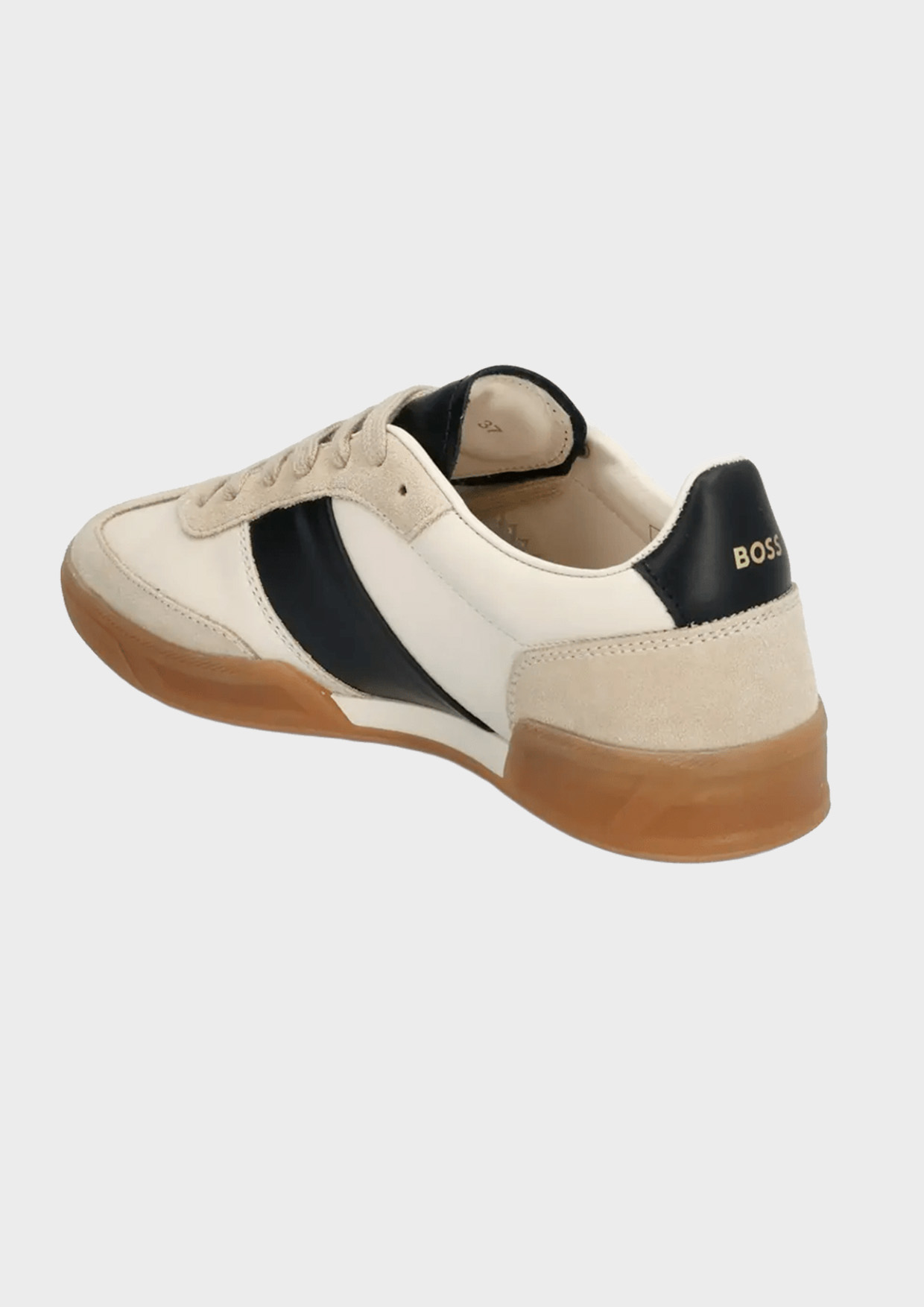 Бесподобные женские кроссовки BOSS бежевого цвета – идеальное сочетание стиля и комфорта! Верх из натуральной кожи обеспечивает элегантность и долговечность, а искусственный материал подошвы гарантирует удобство при ходьбе.