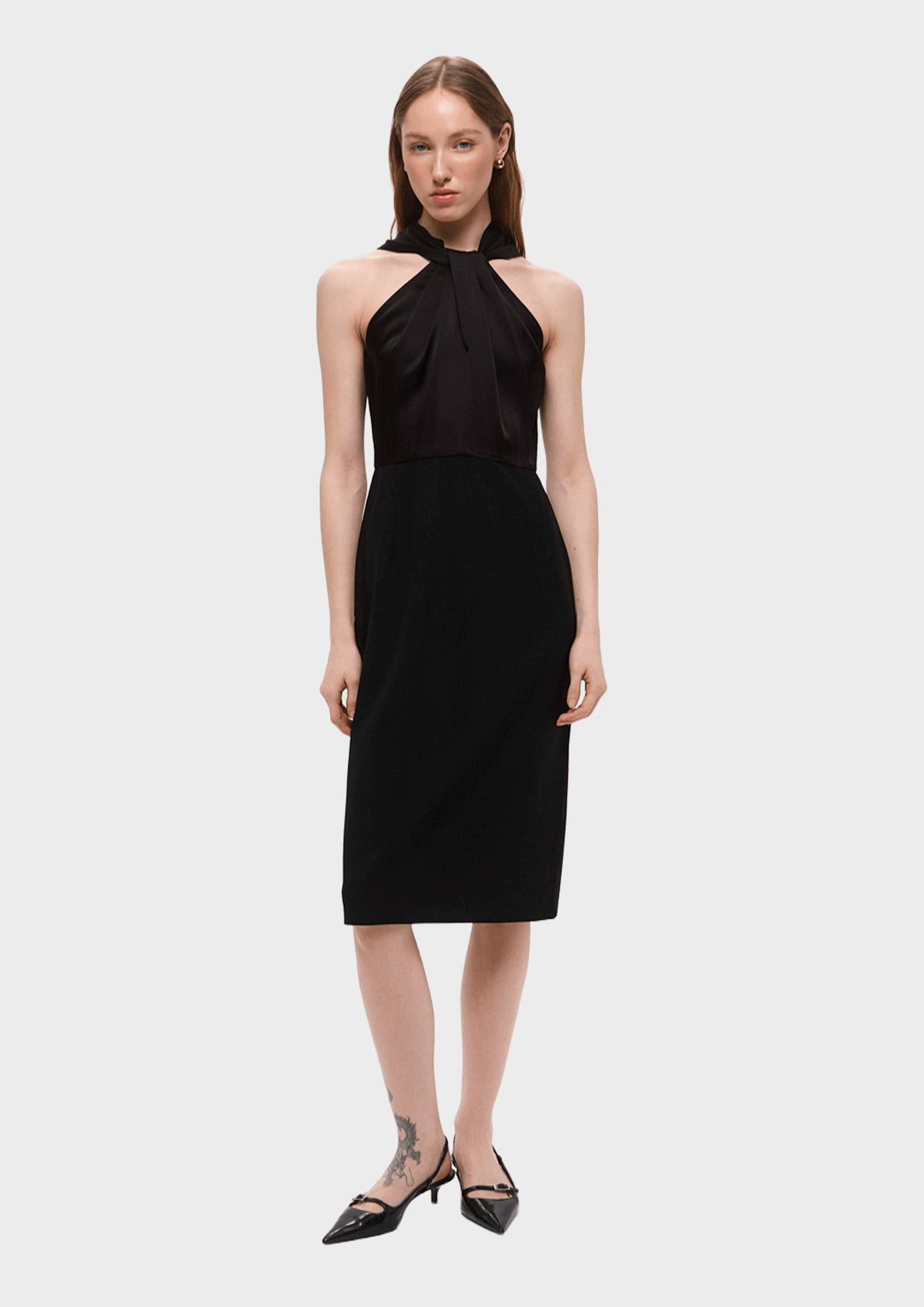Платье BOSS – ваш идеальный спутник в создании стильного образа! Черное платье из смеси вискозы, полиэстера и эластана подчеркнет фигуру, добавит уверенности и элегантности. Открытые плечи визуально удлиняют шею, делают образ женственным и утонченным.