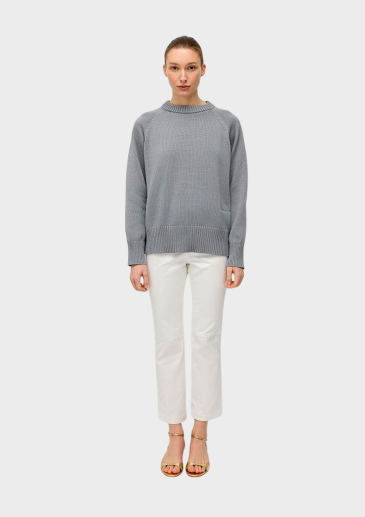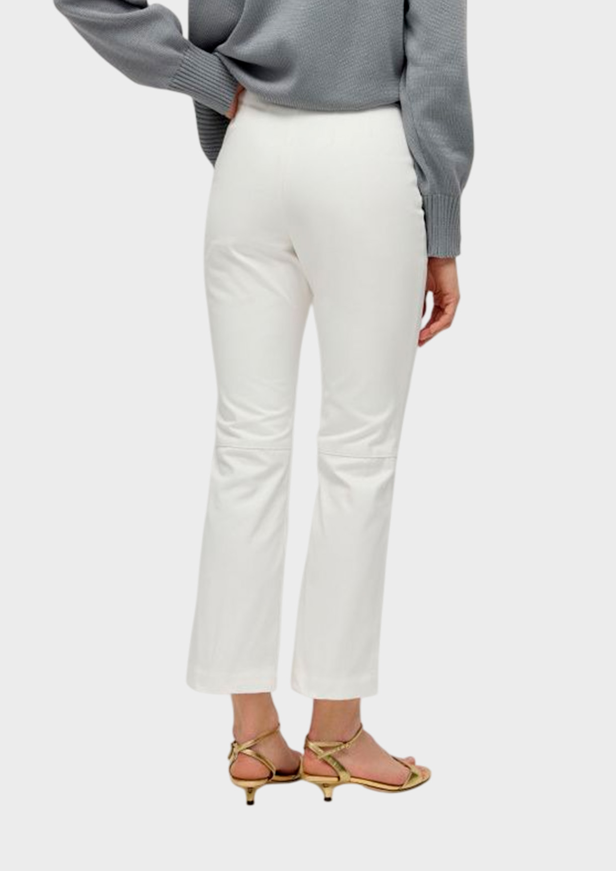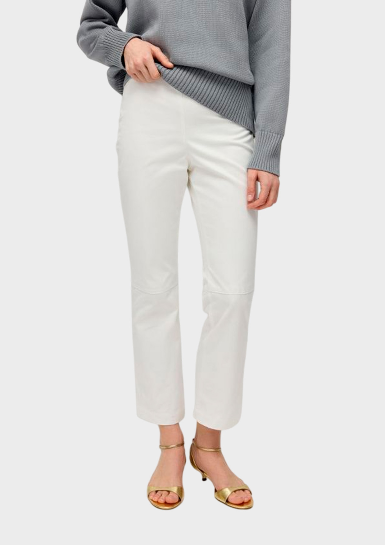 Укороченная модель из итальянского хлопка молочного оттенка подчеркивает индивидуальность и элегантность. Комфорт ношения обеспечивает натуральный материал.