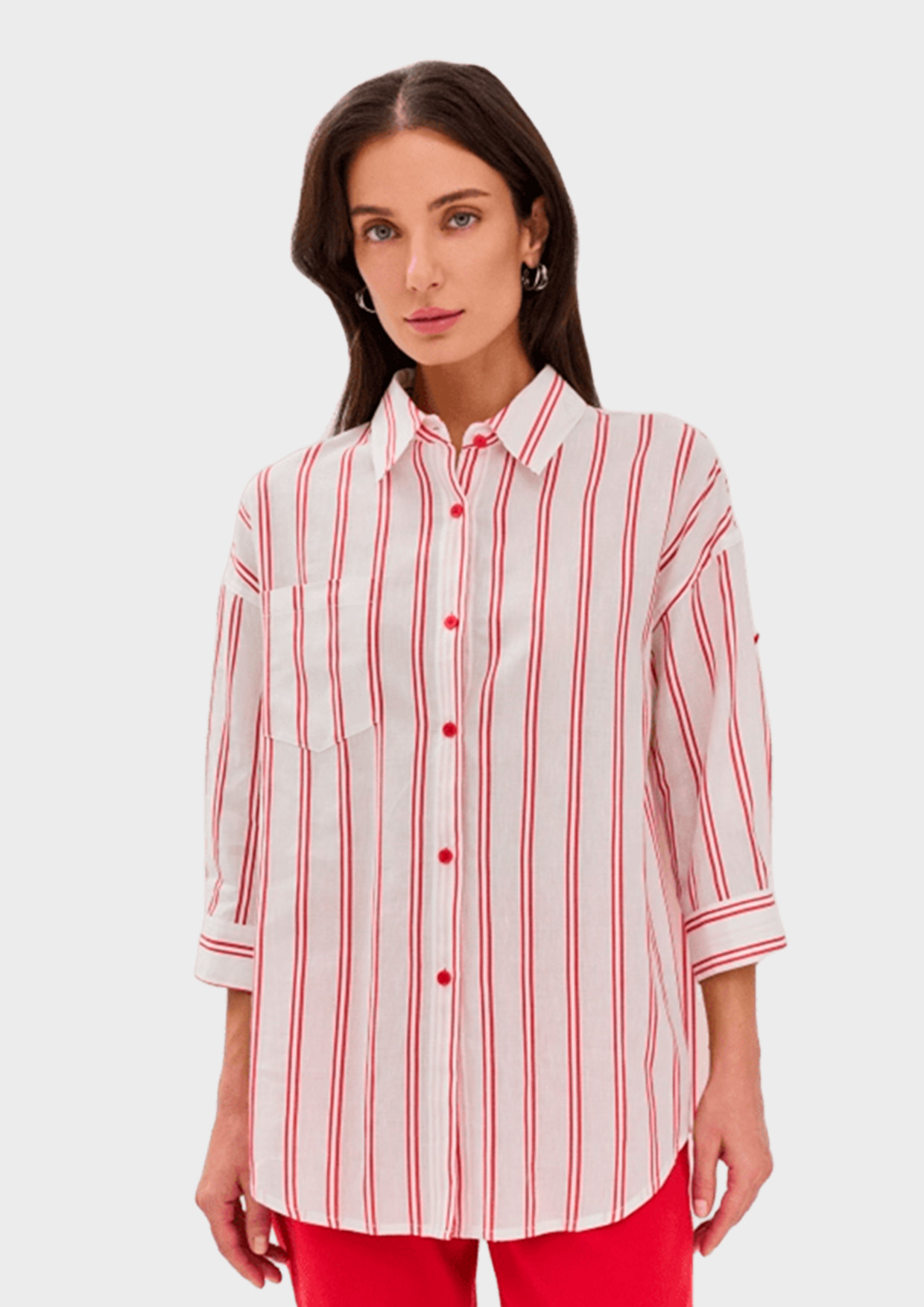 Рубашка оверсайз в яркую полоску от немецкого бренда BULMER – это идеальный выбор для создания стильных и комфортных образов на весну и лето. Эта рубашка из смесового льна в яркую контрастную полоску отличается свободным силуэтом и линией плеч, немного спущенной для создания расслабленного образа.