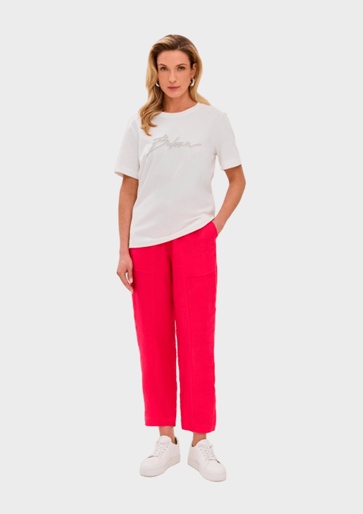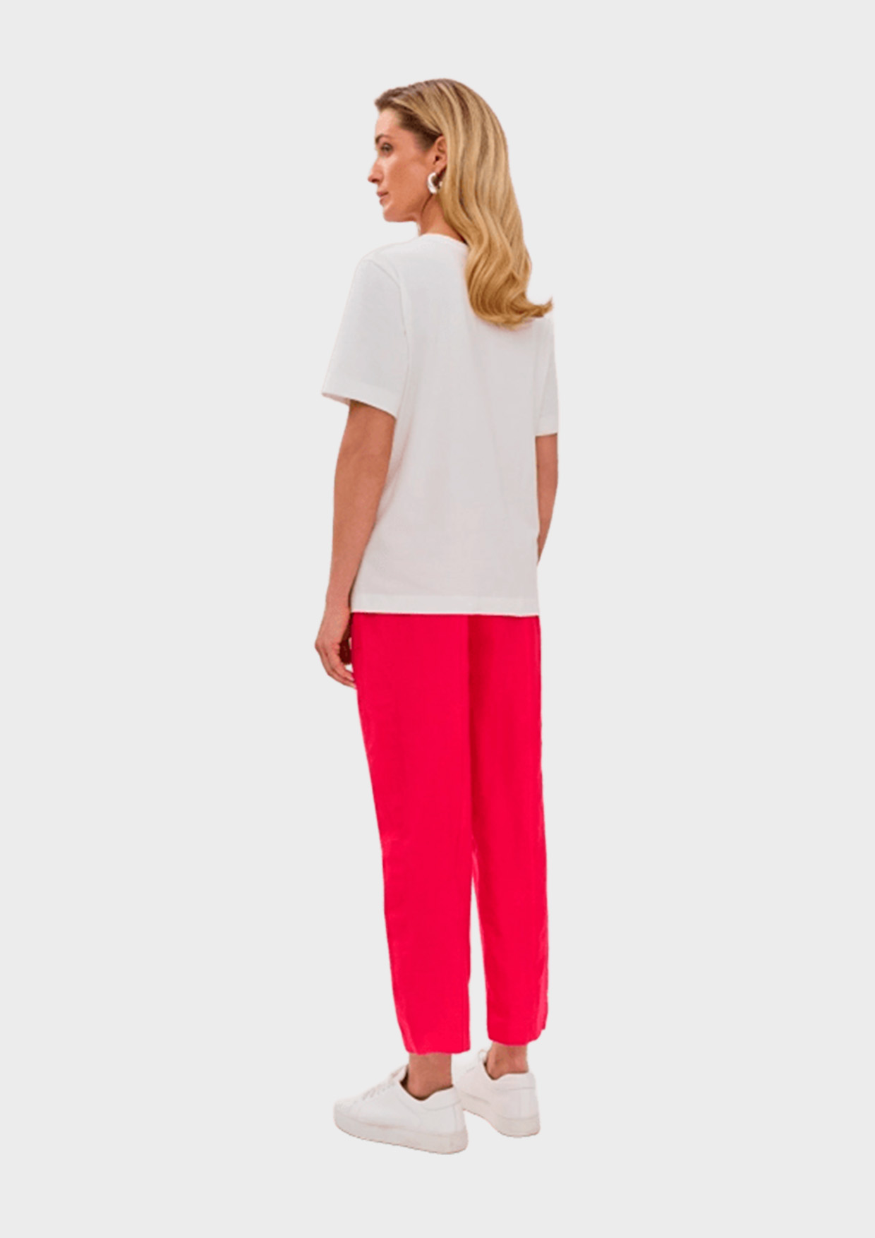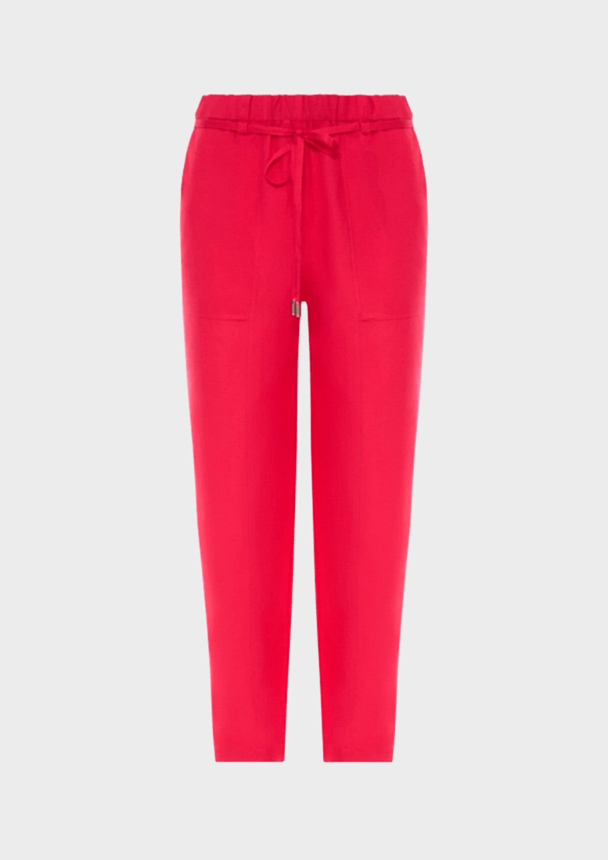 Брюки имеют свободный силуэт, немного зауженный к низу, и представлены в ярком цвете фуксия, который добавит в ваш образ нотку утонченного вкуса. Резинка по талии и пояс в цвет в комплекте обеспечивают удобную посадку и подчеркивают женственность.