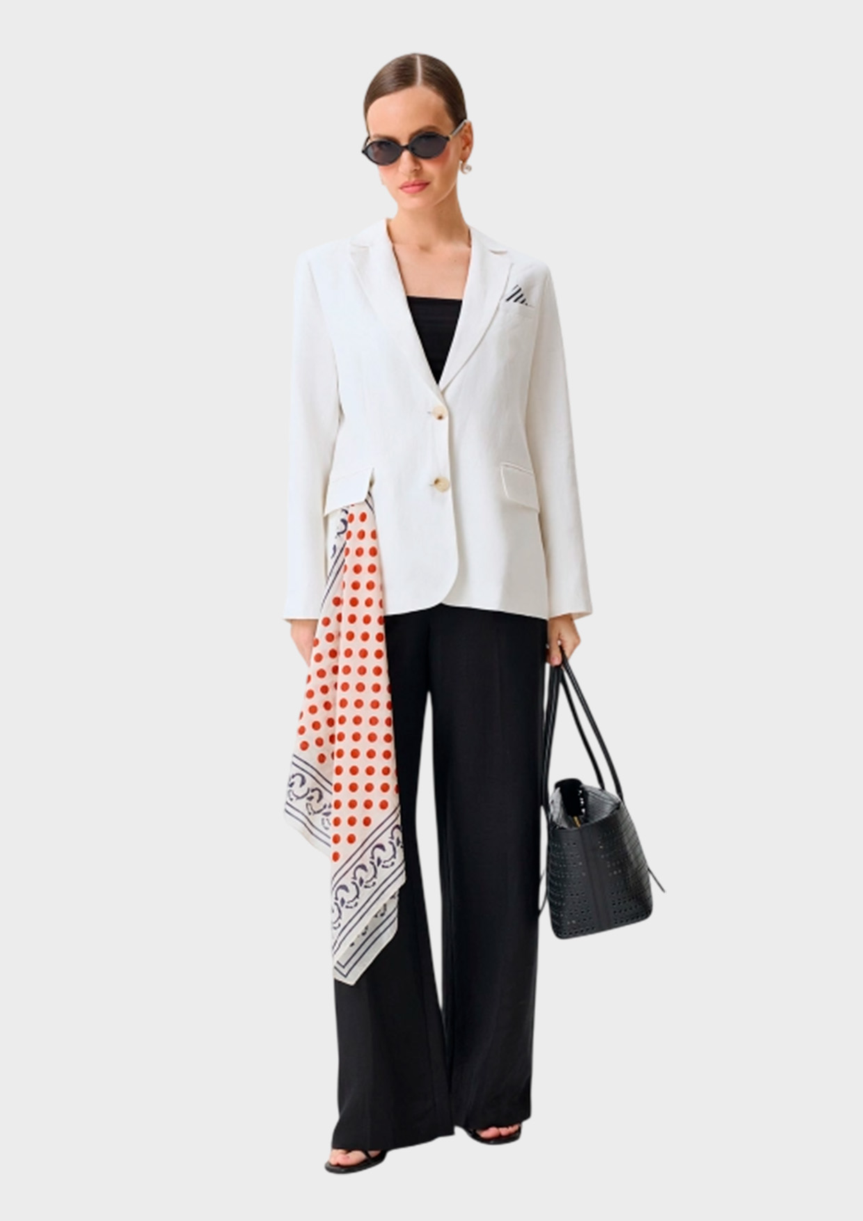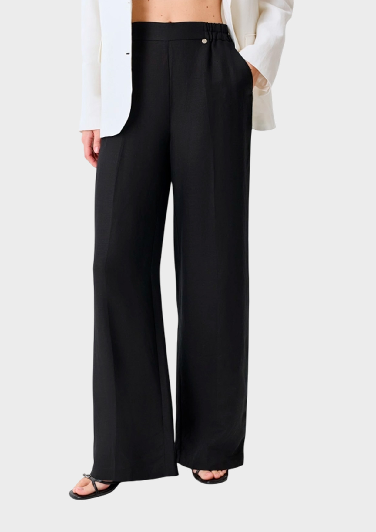 Брюки из смесового льна и вискозы с мягкими стрелками. Прямой силуэт. Резинка по линии талии по спинке. Боковые карманы в швах.