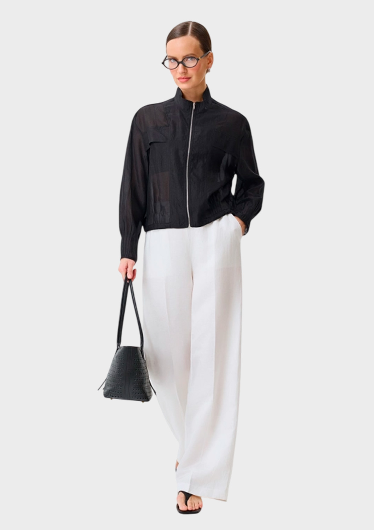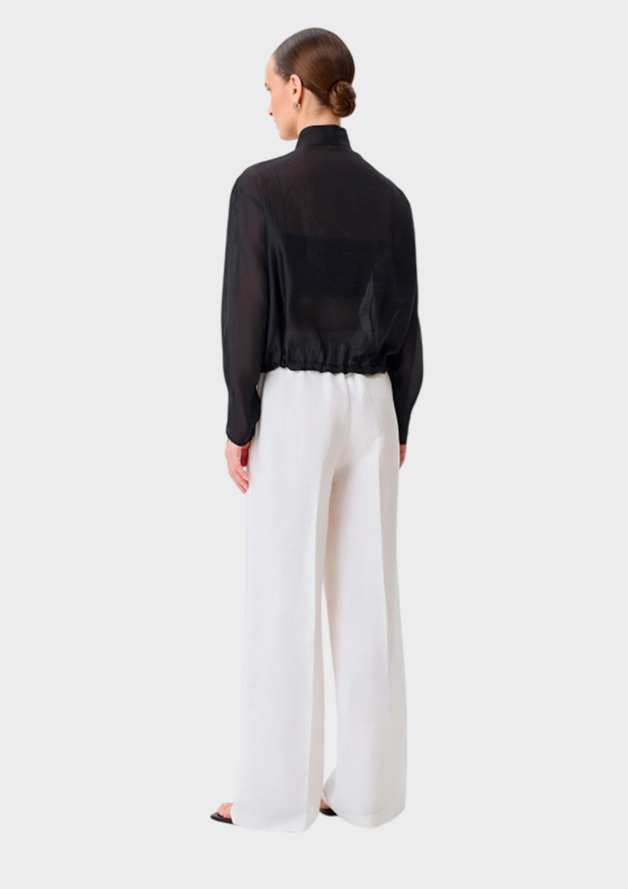 Брюки из смесового льна и вискозы с мягкими стрелками. Прямой силуэт. Резинка по линии талии по спинке. Боковые карманы в швах.