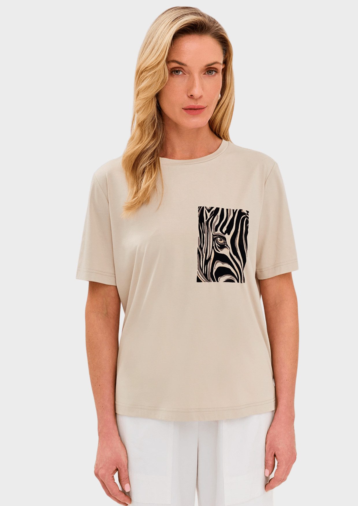 Футболка с графичным анималистичным принтом в стиле Сафари от немецкого бренда BULMER станет стильным дополнением вашего летнего гардероба. Модель выполнена из комфортного и дышащего материала, состоящего из 65% вискозы, 30% сороны и 5% спандекса, что обеспечивает приятные тактильные ощущения и свободу движений.