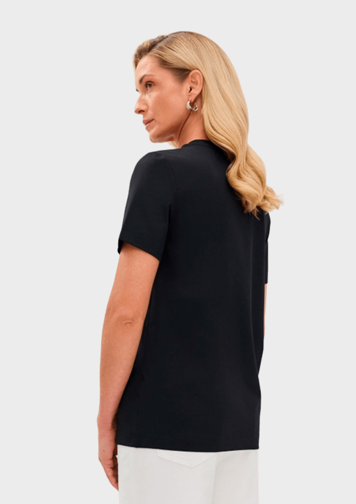 Базовая черная футболка женская от немецкого бренда BULMER – это идеальный выбор для создания стильных и комфортных образов на каждый день. Прямой силуэт и круглый вырез делают ее универсальной и подходящей для любого типа фигуры.