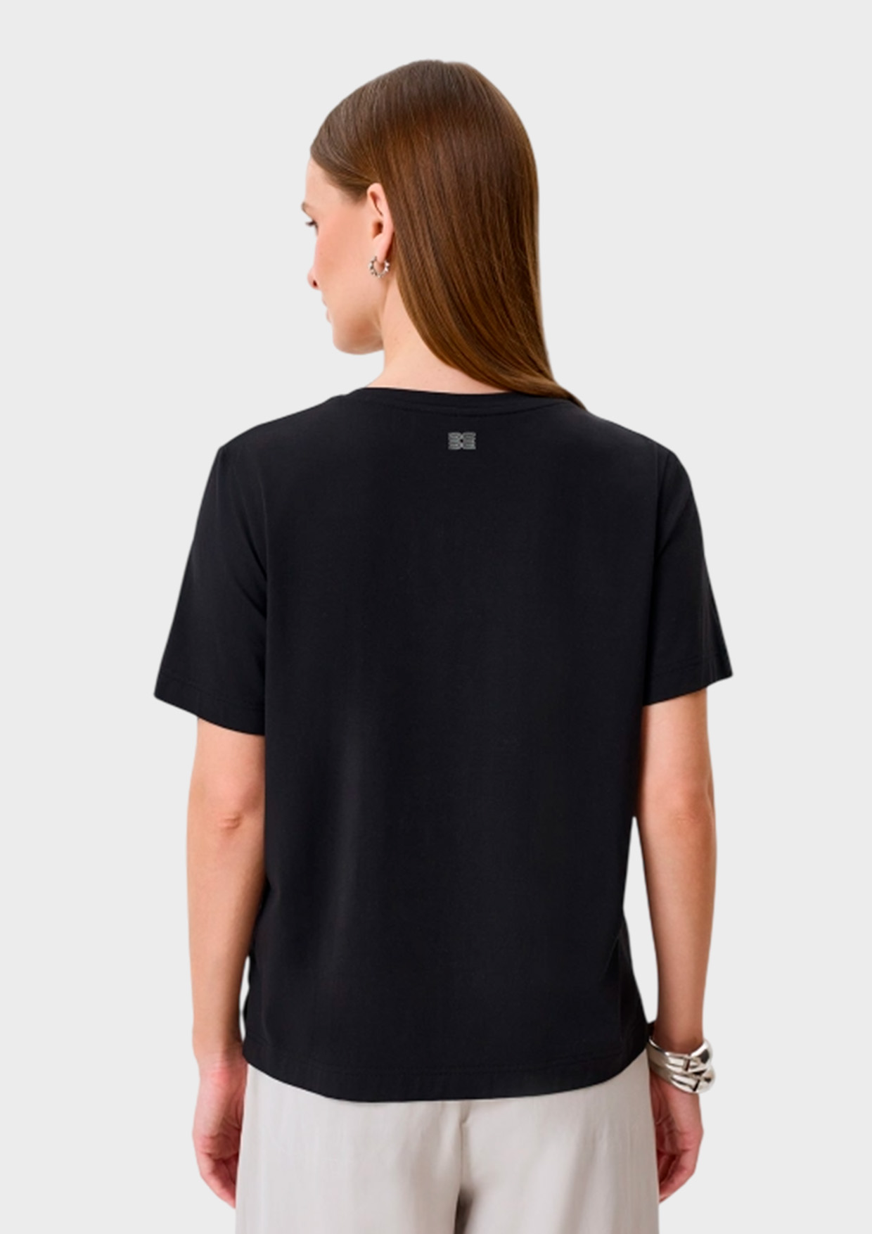 Футболка с металлизированным анималистичным принтом. Свободный силуэт. Круглый вырез. Короткие втачные рукава. В составе модал и хлопок.