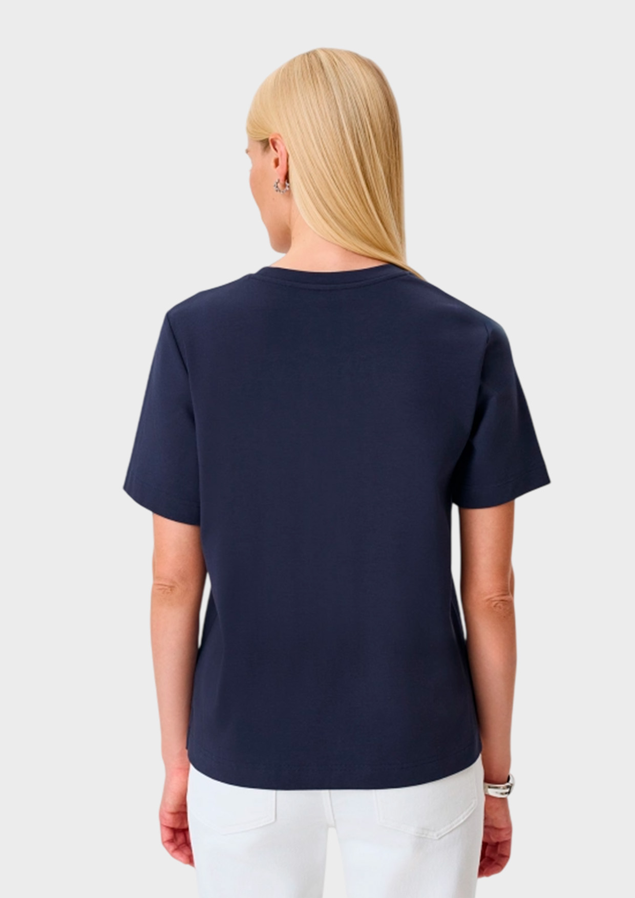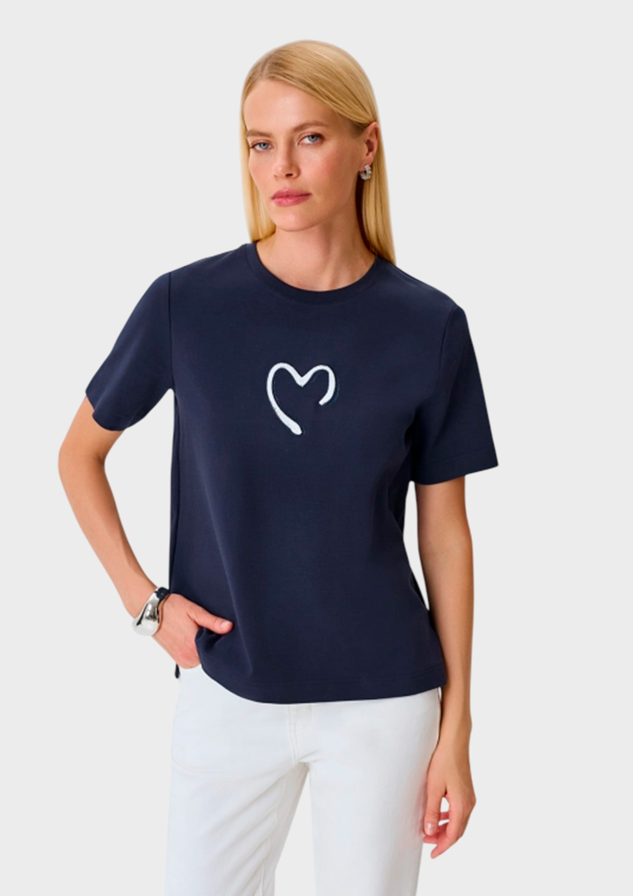 Футболка с контрастной вышивкой "сердце". Прямой силуэт. Круглый вырез. Укороченные втачные рукава. Деликатные разрезы в боковых швах. В составе хлопок.
