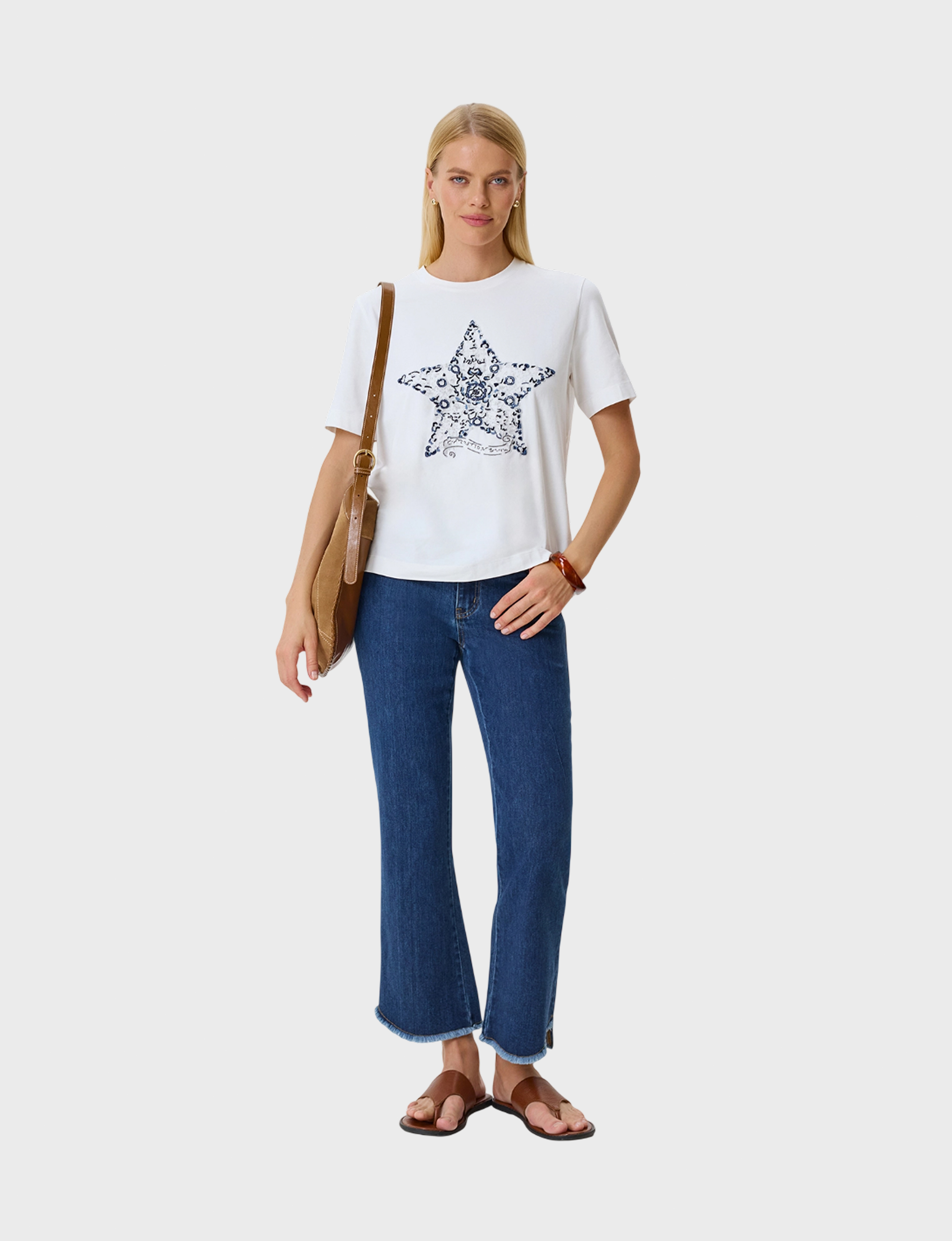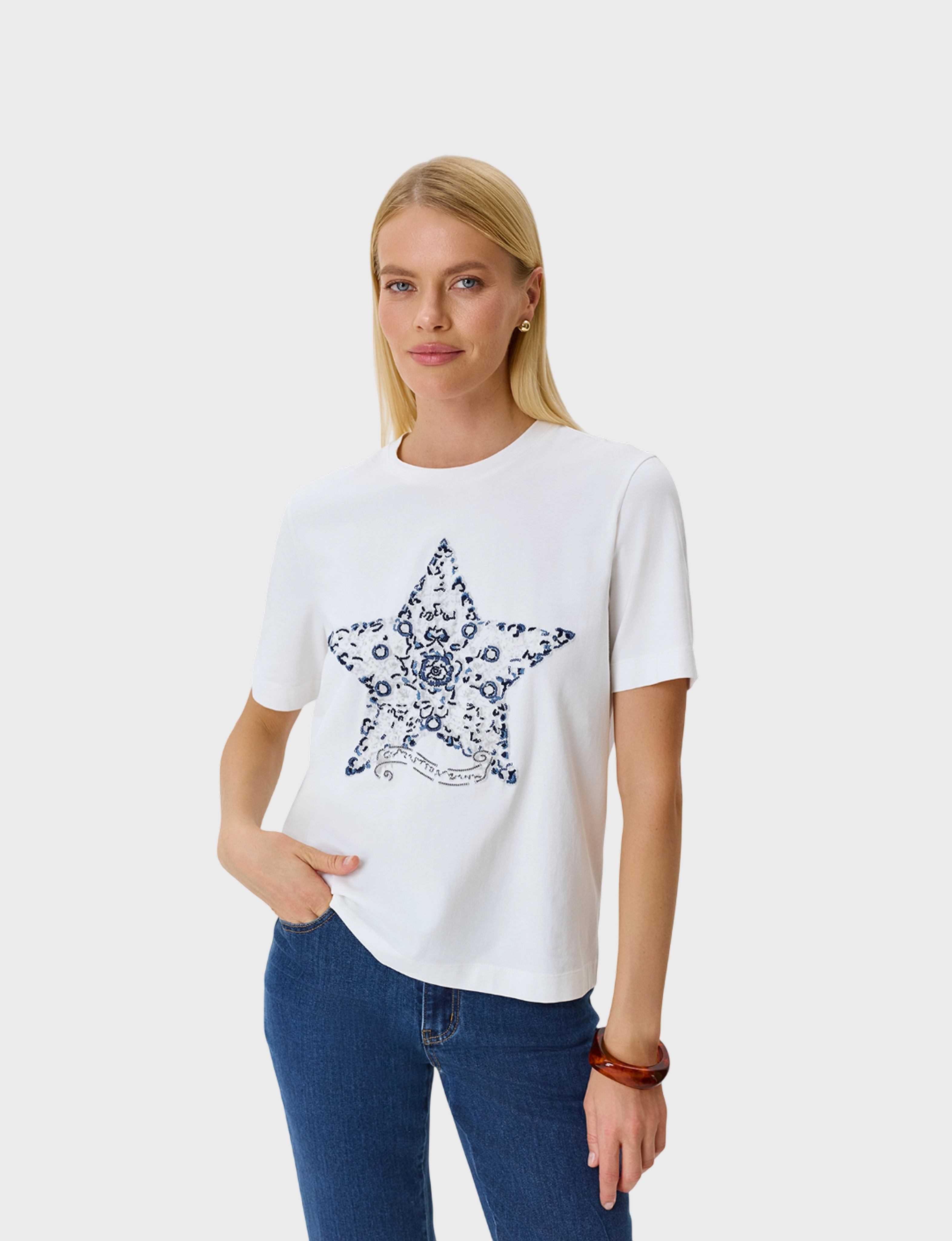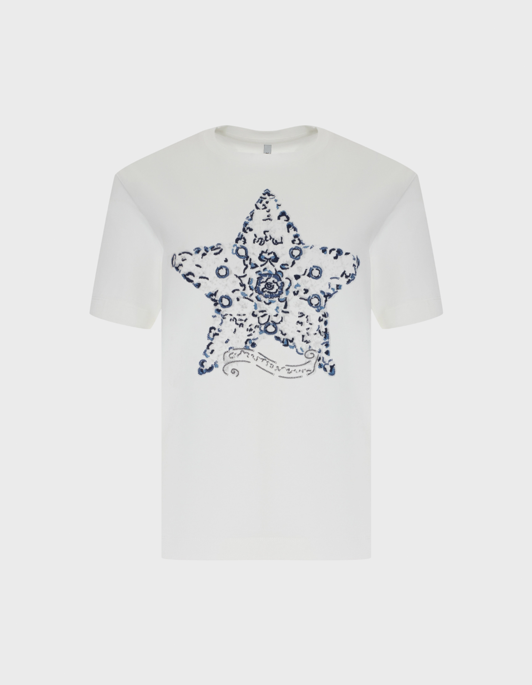 Футболка из эластичного хлопка с яркой контрастной вышивкой. Прямой силуэт. Круглый вырез. Короткие втачные рукава.