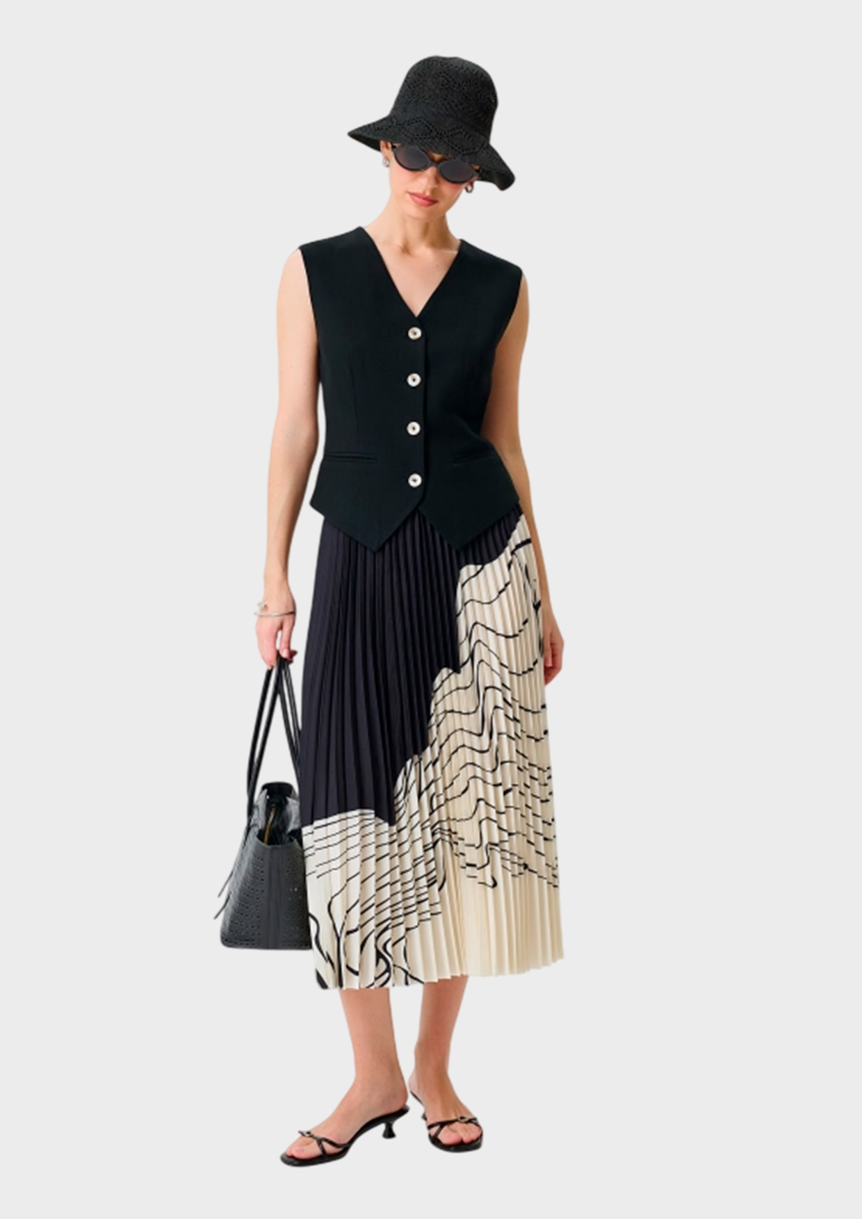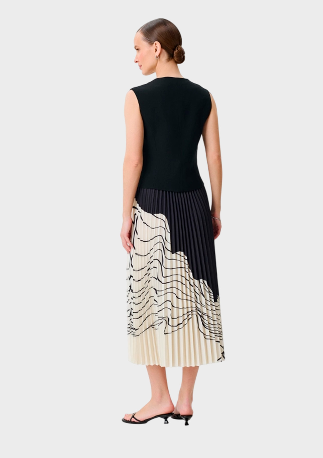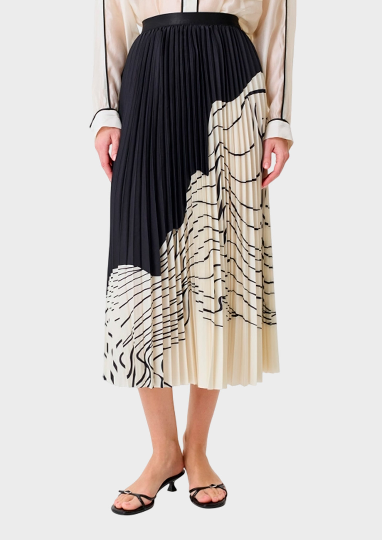 Юбка-плиссе с авторским асимметричным принтом. Длина миди. А-силуэт. Резинка по линии талии.