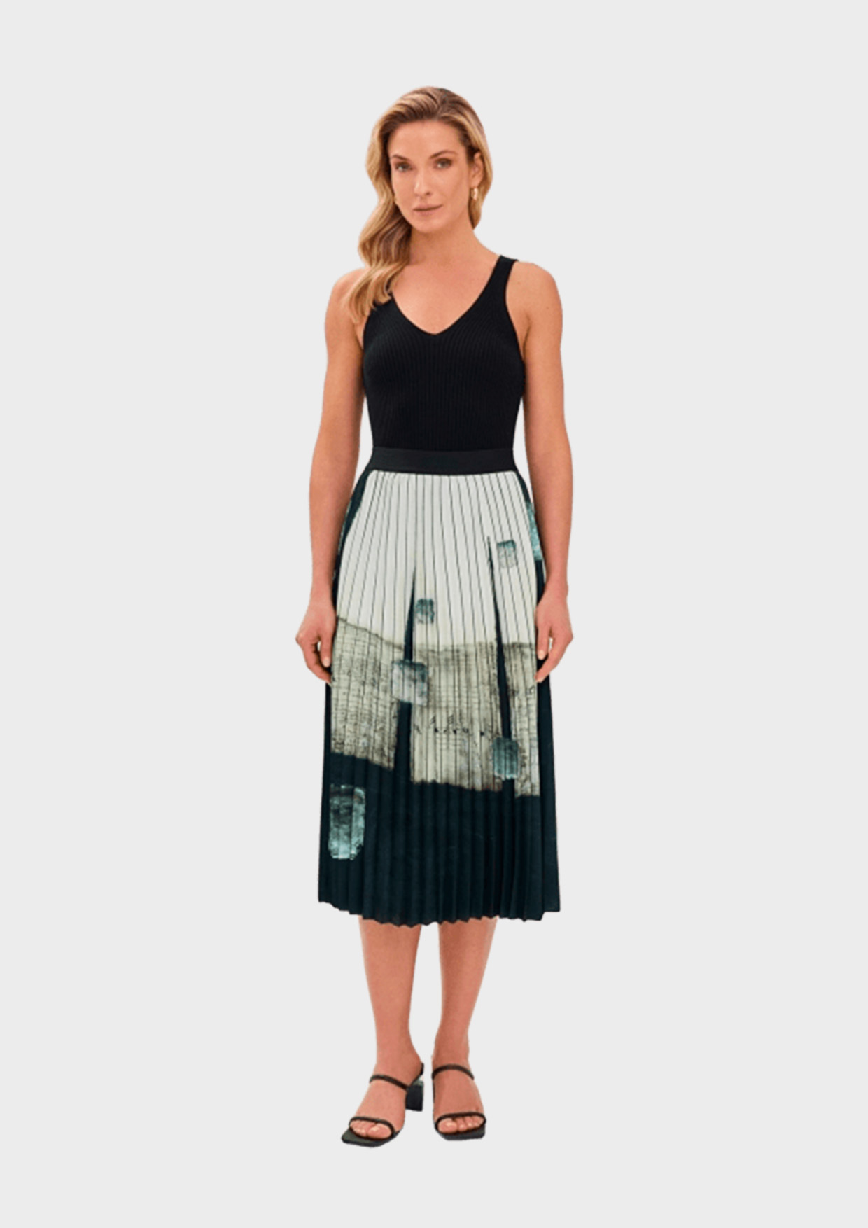 Плиссированная юбка с акцентным принтом от немецкого бренда BULMER станет настоящим украшением вашего гардероба. Модель выполнена из 100% полиэстера, отличается гладкой фактурой и комфортной посадкой средней высоты.