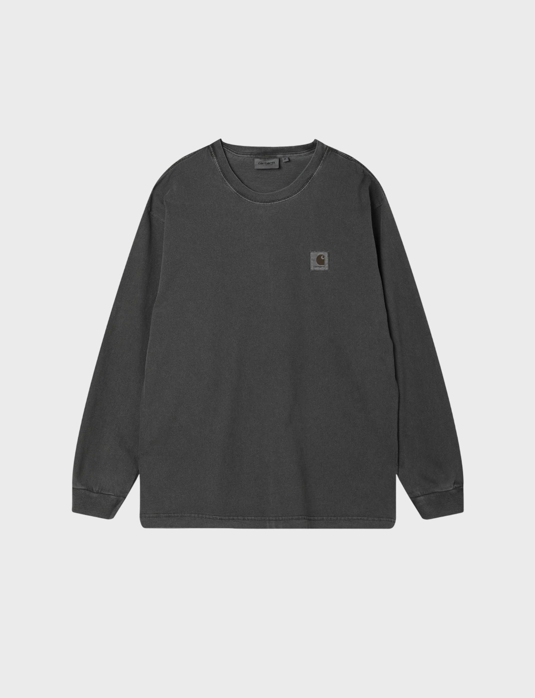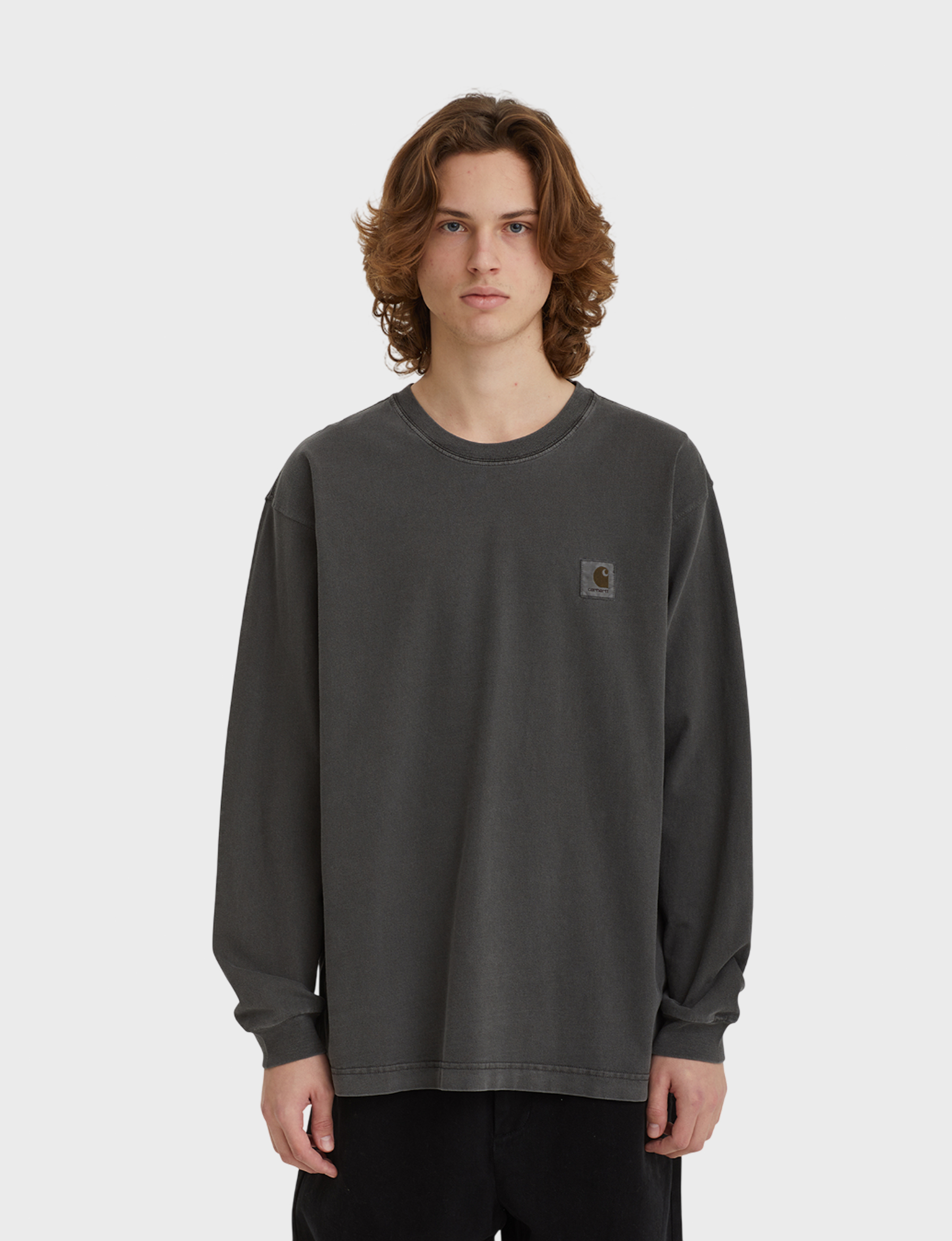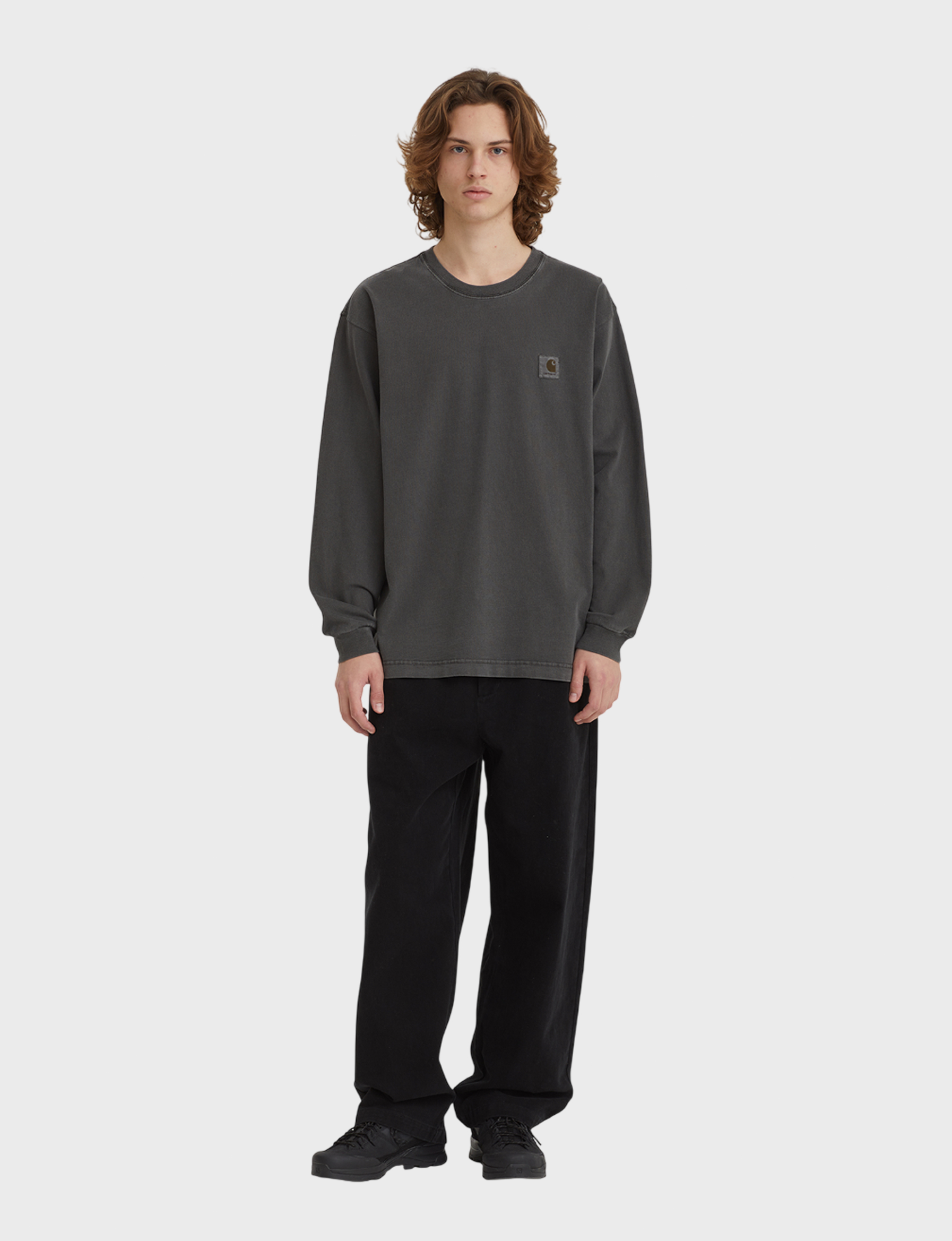 Лонгслив Carhartt WIP из плотного хлопкового джерси, окрашенного пигментом для винтажного эффекта. На груди — фирменная нашивка с логотипом бренда.