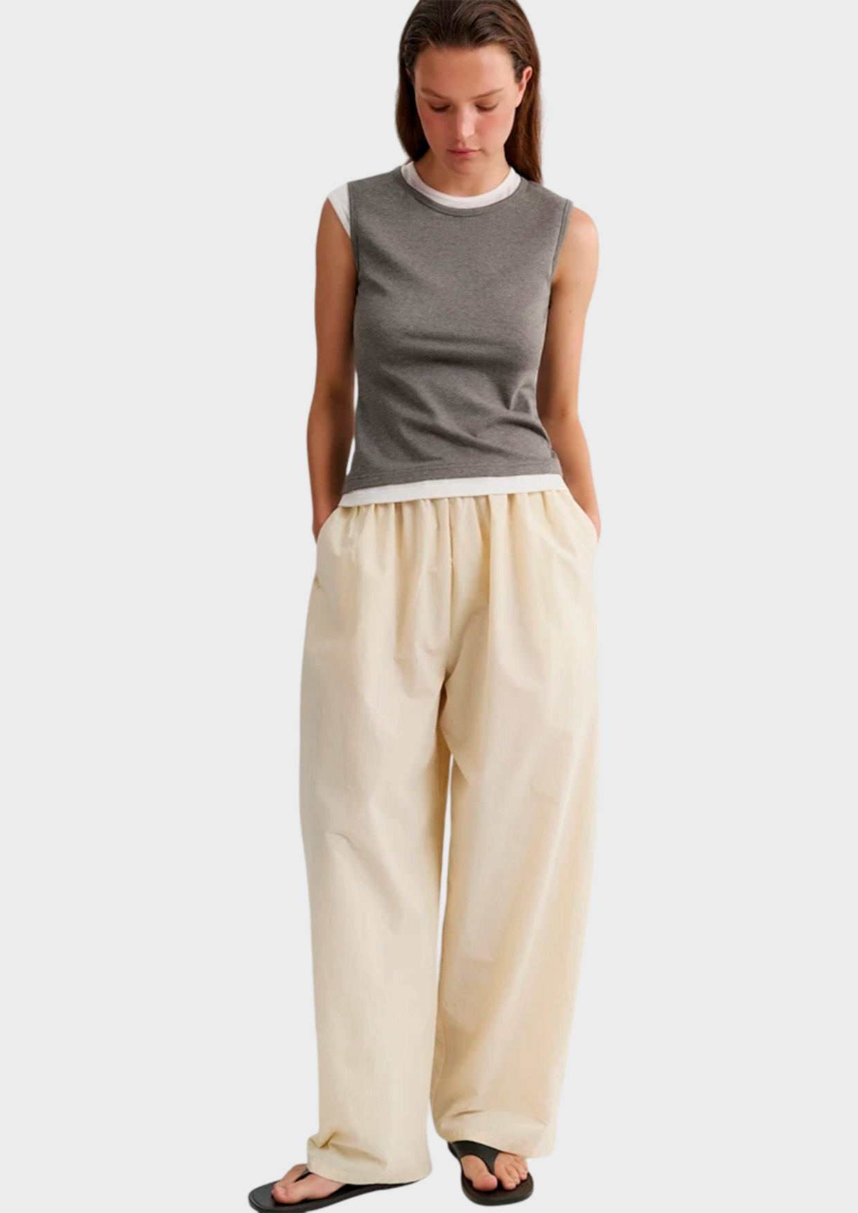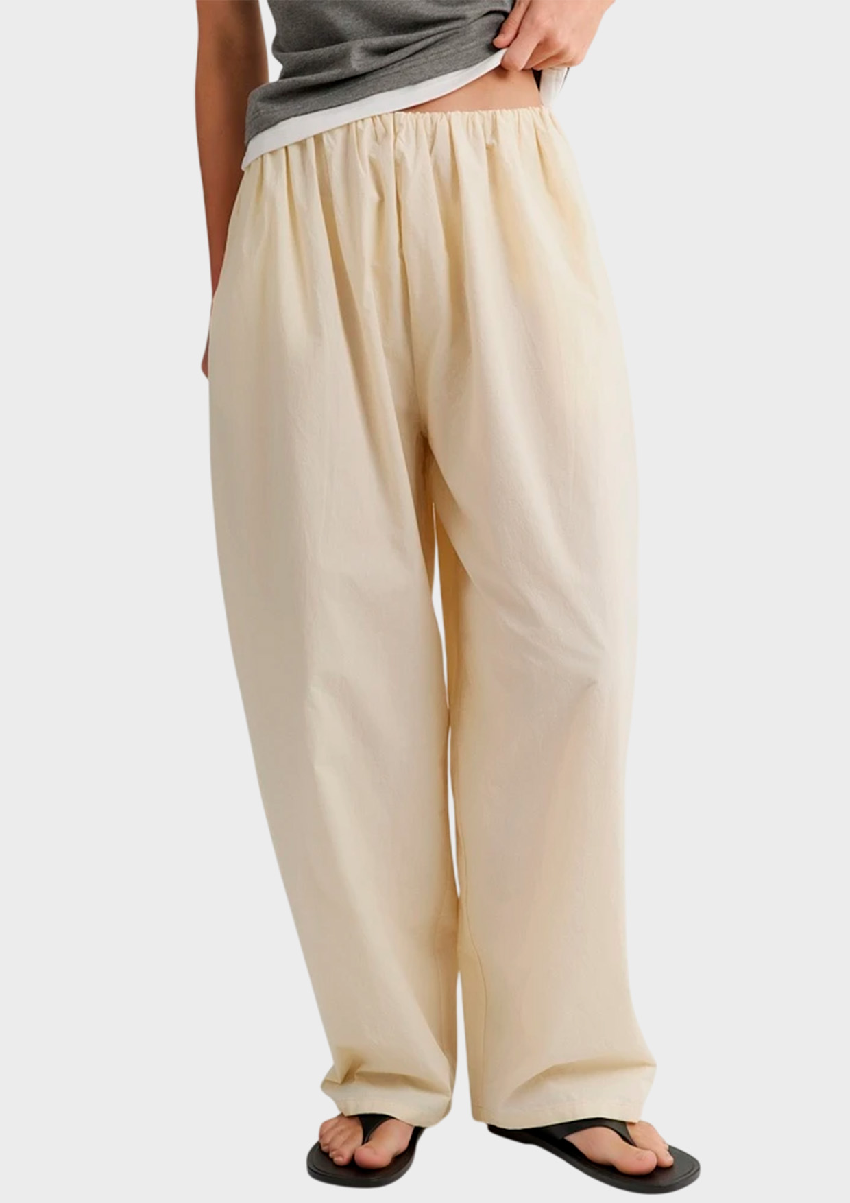 Брюки из хлопка пима, в которых удобно прожить весь день — от утреннего кофе до неспешной прогулки вечером. Мягкая и дышащая ткань приятна коже и комфортно ощущается в течении всего дня. Свободный силуэт и эластичный пояс создают расслабленную посадку и не сковывают движения. А свежий сливочный оттенок добавляет образу лёгкости и становится базой гардероба. Брюки можно сочетать с рубашками, топами и лёгким трикотажем.