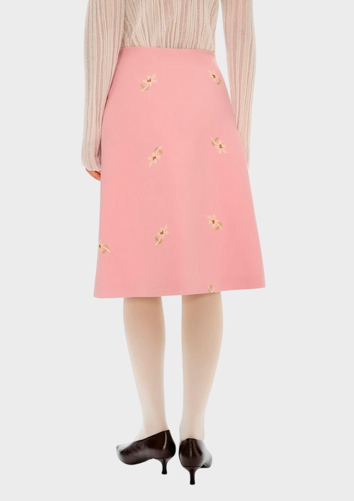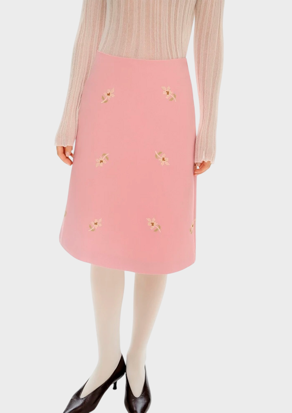 Аккуратная юбка-трапеция с акцентной цветочной вышивкой. Лаконичная форма подчёркивает силуэт, а вышивка добавляет образу индивидуальности, сохраняя ощущение минимализма. Юбка легко сочетается как с базовыми топами и трикотажем, так и с жакетом из комплекта, создавая цельный и гармоничный образ. Универсальная длина и продуманный крой делают модель комфортной для повседневной носки.