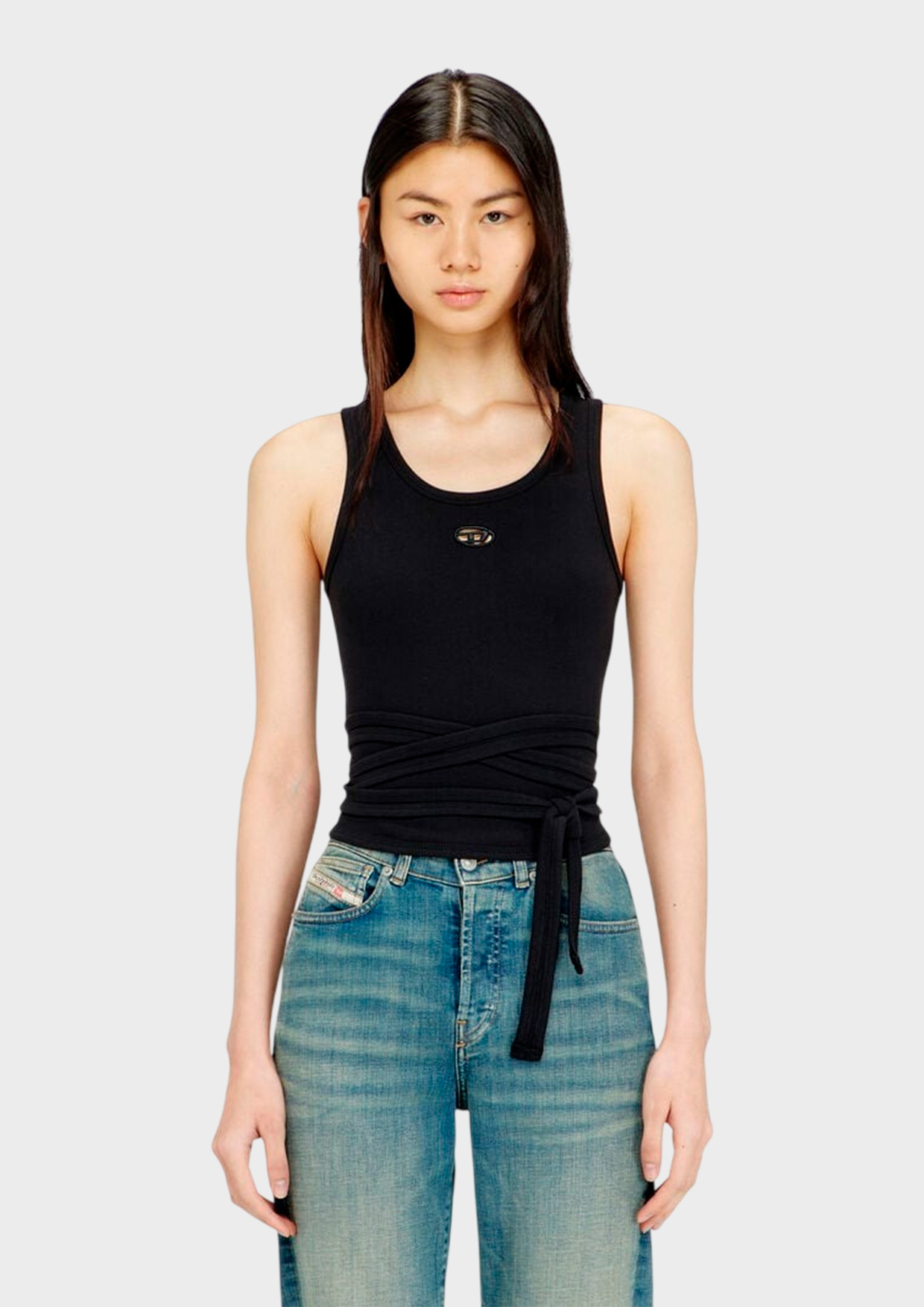 Черный цвет универсален и легко сочетается с любой одеждой. Эластичный материал обеспечивает комфортное ношение и свободу движений. Закрепите завязки так, как вам удобно, создавая уникальный образ каждый день.