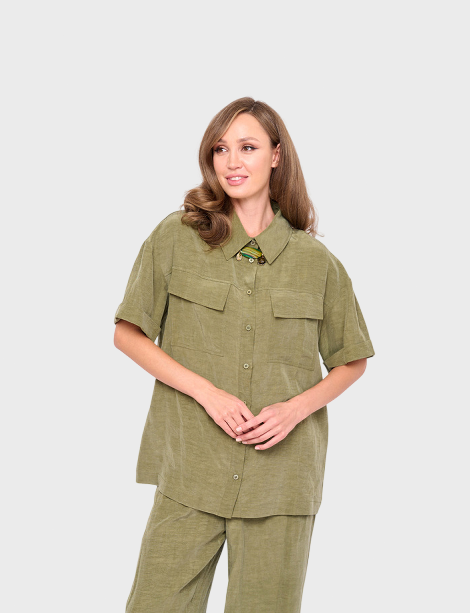 Женственная блуза от бренда Franco Vello - в элегантном зелёном оттенке, который подчеркнёт вашу индивидуальность и создаст комфортные условия в тёплое время года. Благодаря сочетанию лиоцелла (62%), льна (22%) и вискозы (16%) ткань приятная к телу, обеспечивает отличную вентиляцию и сохраняет форму после стирки.