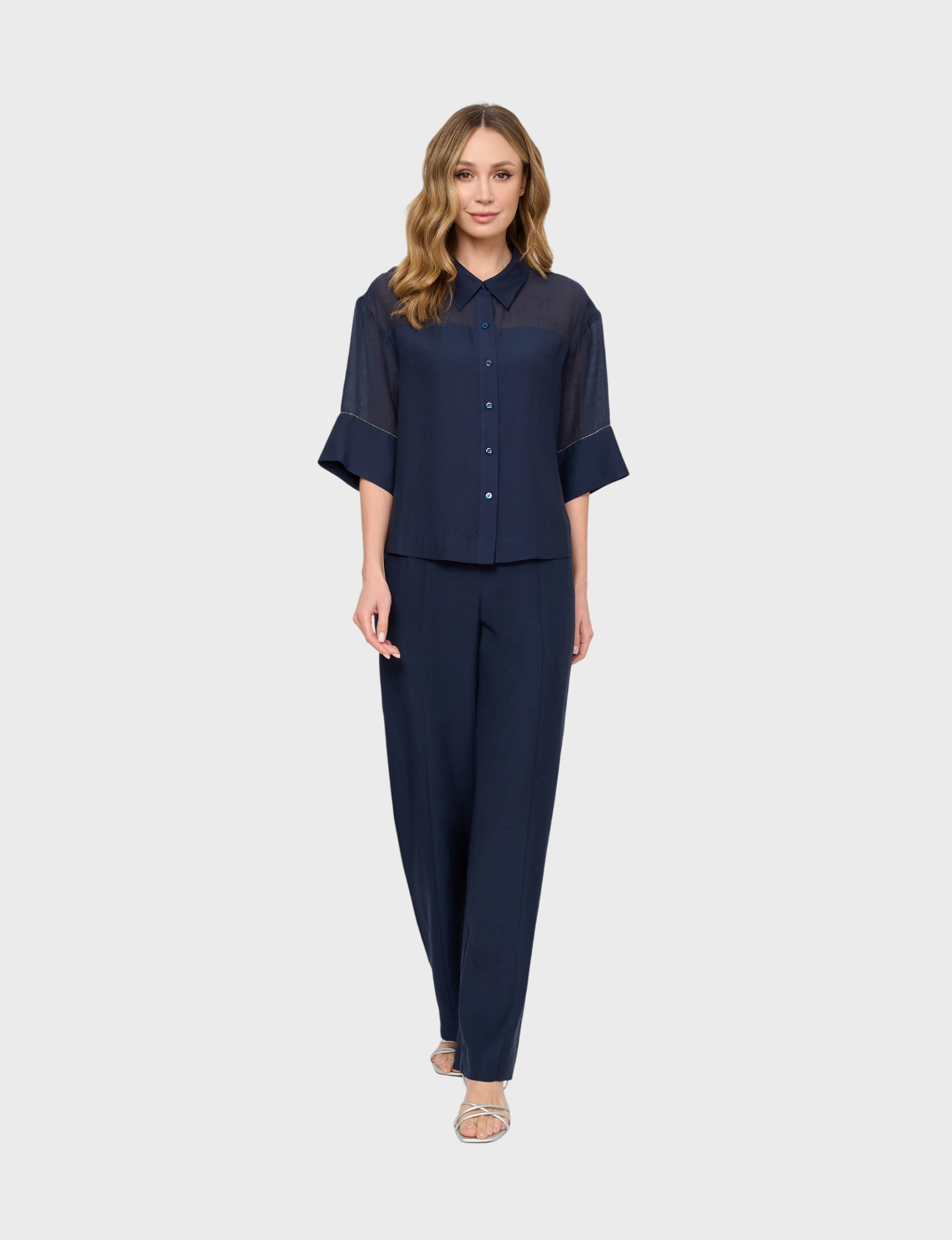 Брюки от бренда Franco Vello - Элегантные тёмно-синее изделие из приятного сочетания вискозы (75%) и льна (25%), обеспечит свежесть и удобство даже в жаркую погоду. Благодаря универсальному дизайну вы сможете создавать множество образов, идеально подходящих как для прогулок по городу, так и для уютных встреч с друзьями.