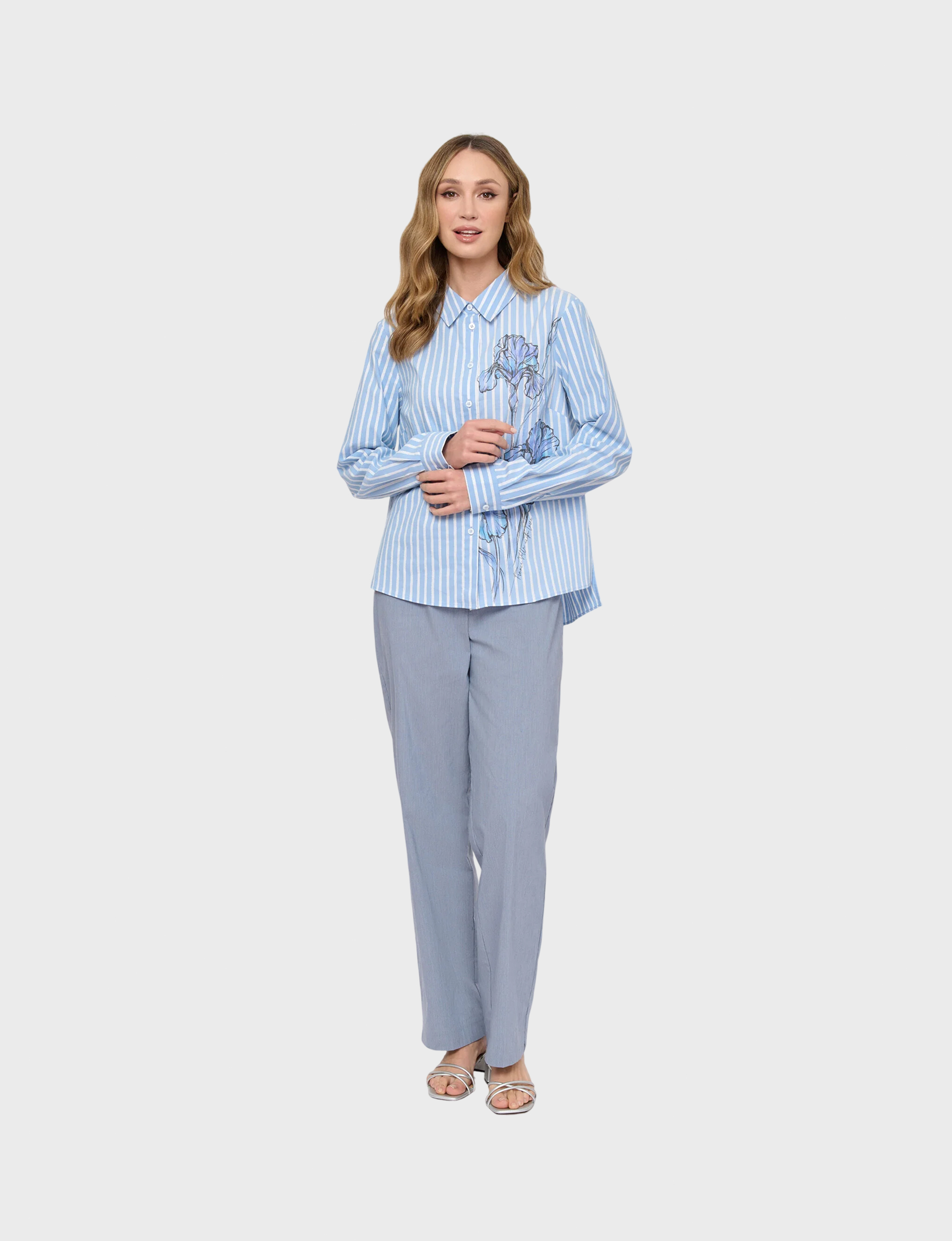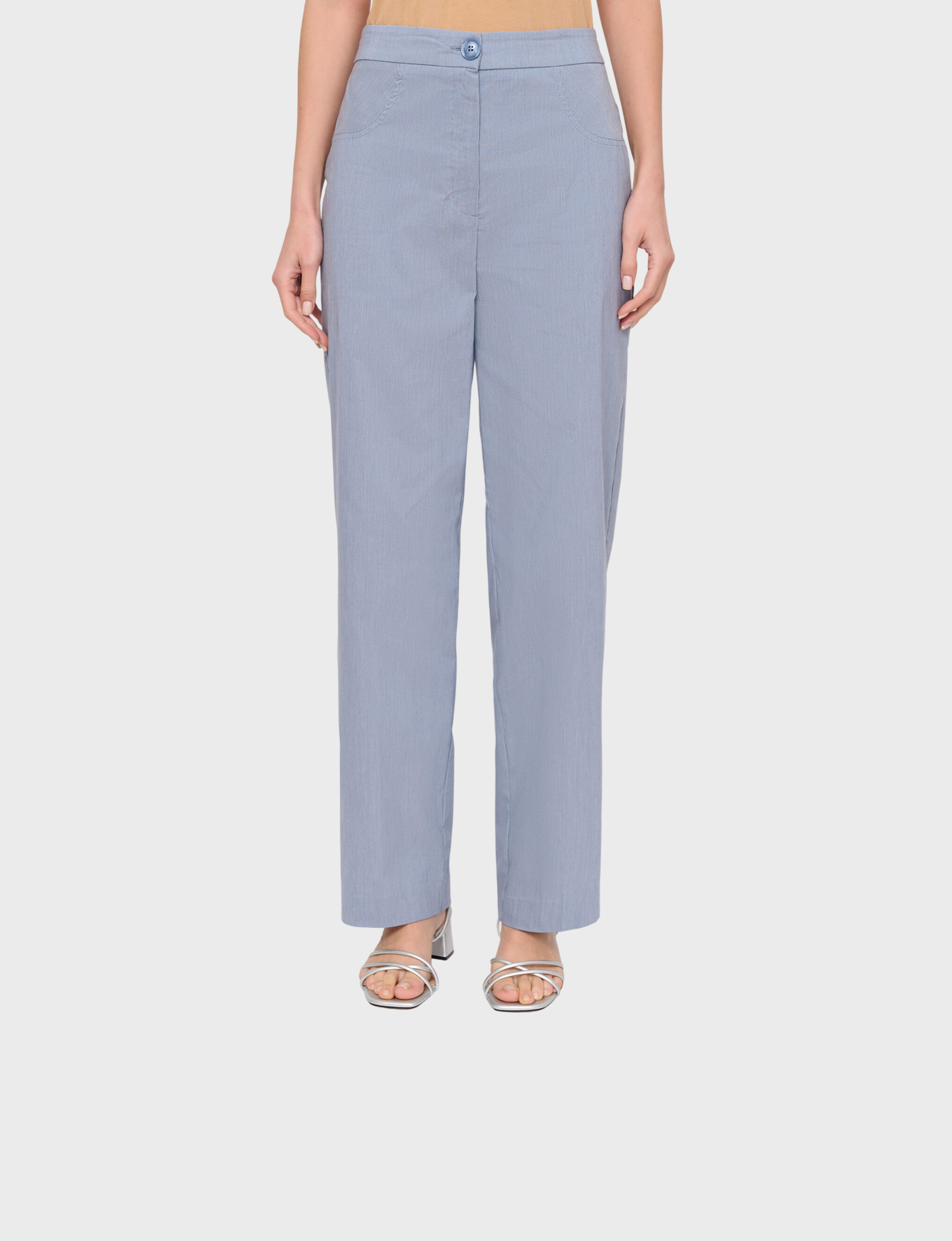 Женские брюки Franco Vello серо-голубого цвета – Элегантные, комфортные благодаря составу из хлопка (64%), полиамида (32%) и эластана (4%). Подходит как для повседневных образов, так и для особых случаев.