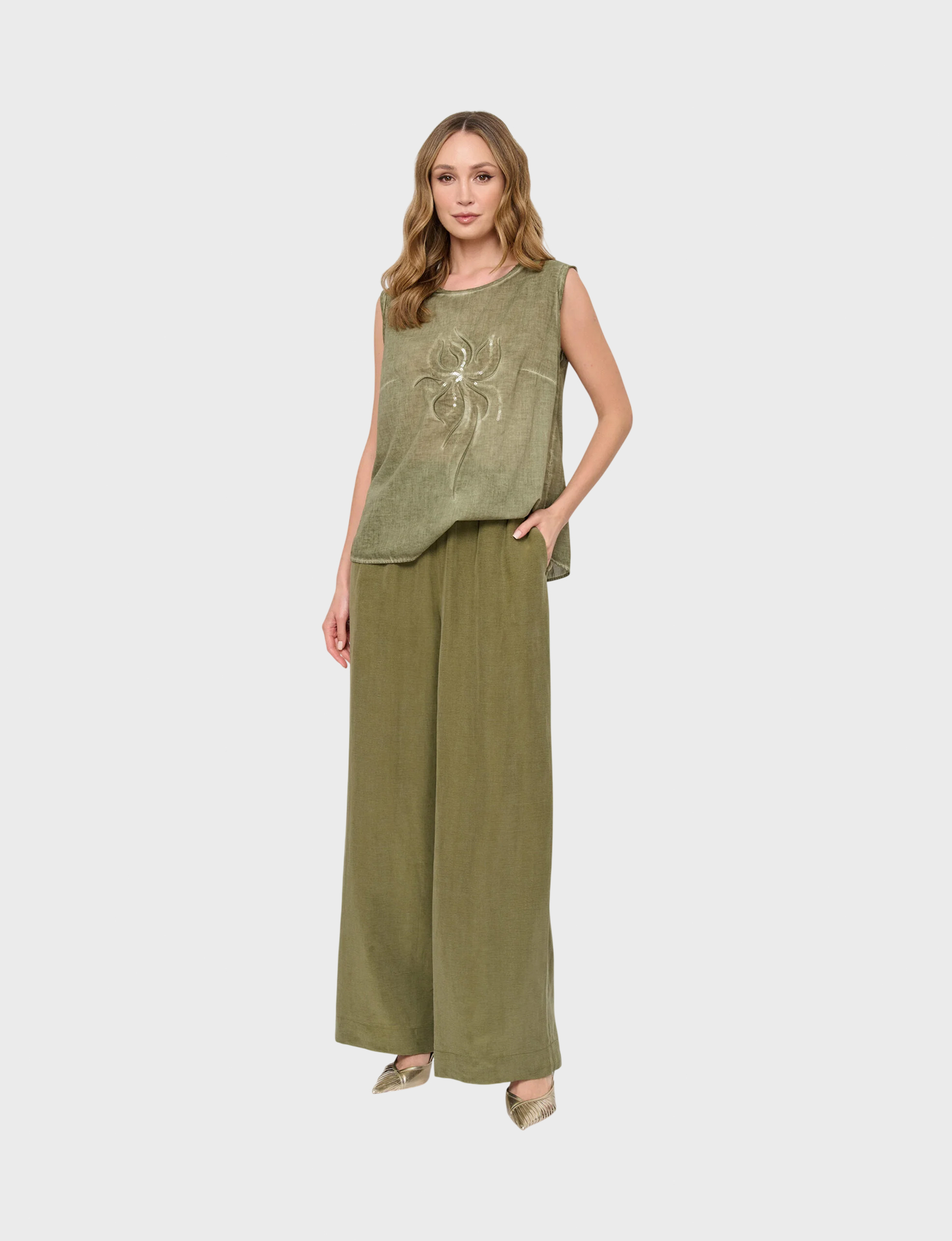 Женские брюки бренда Franco Vello – Изготовлены из приятной к телу смеси лиоцелла (62%), льна (22%) и вискозы (16%).), что обеспечивает комфорт при носке. Зелёный оттенок придаст вашему образу свежести и оригинальности.
