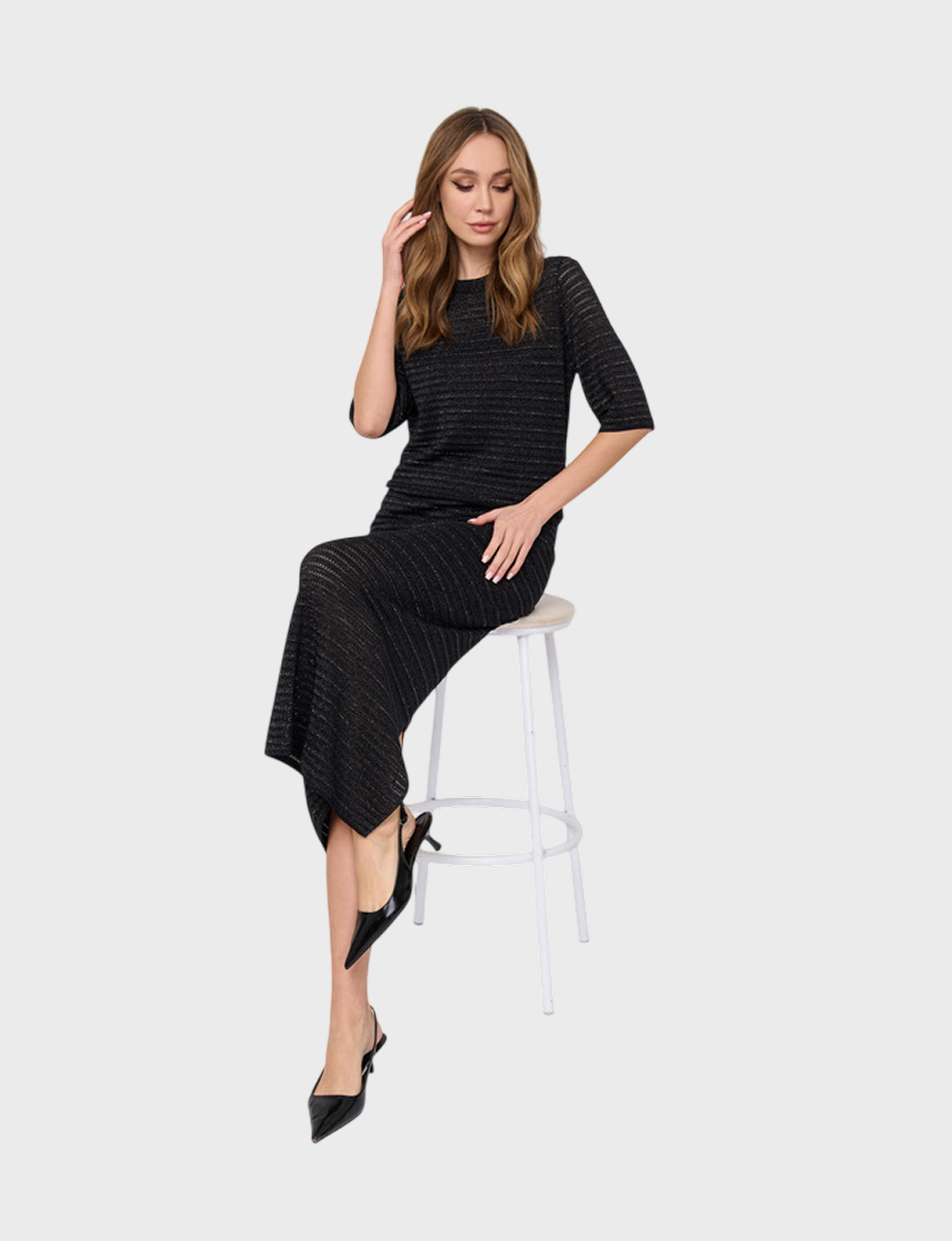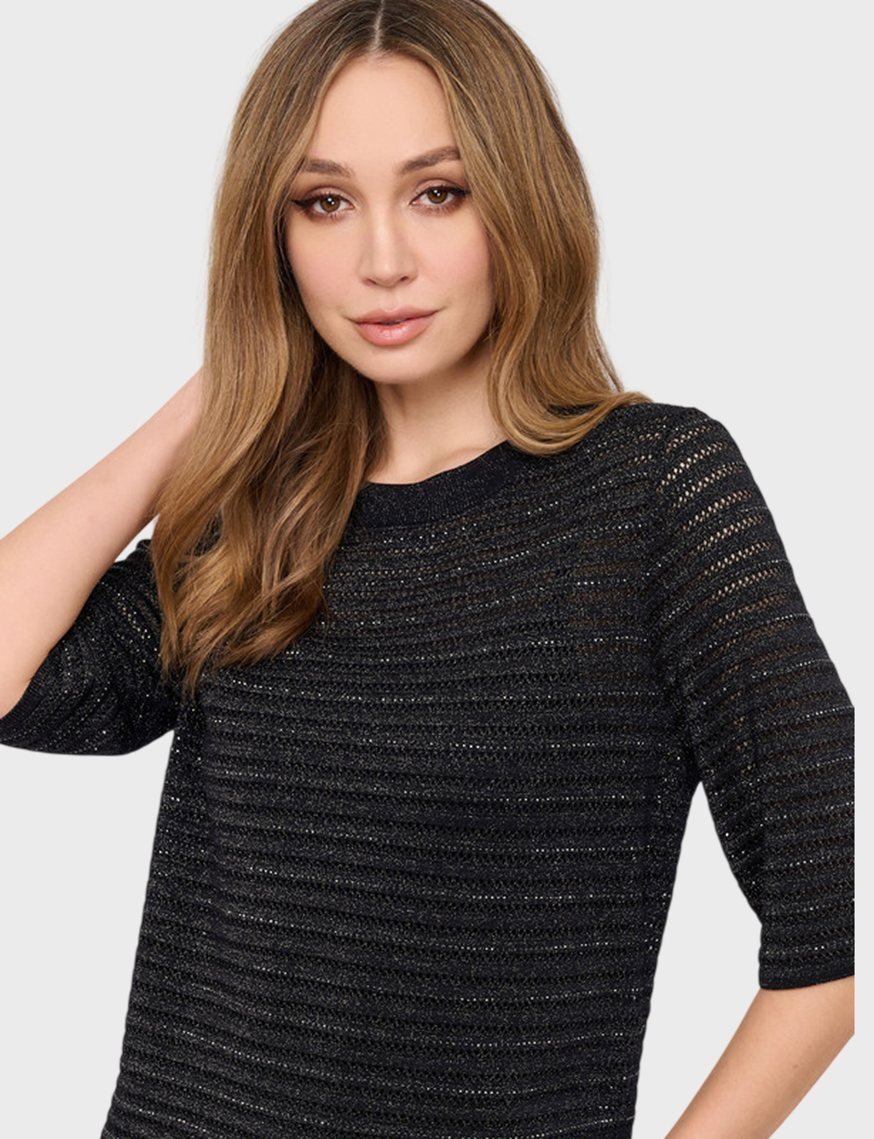 Черный джемпер бренда Franco Vello – 65% нежной вискозы, дополненные блеском люрекса (19%) и прочностью нейлона (16%), подарят комфорт и свободу движений.