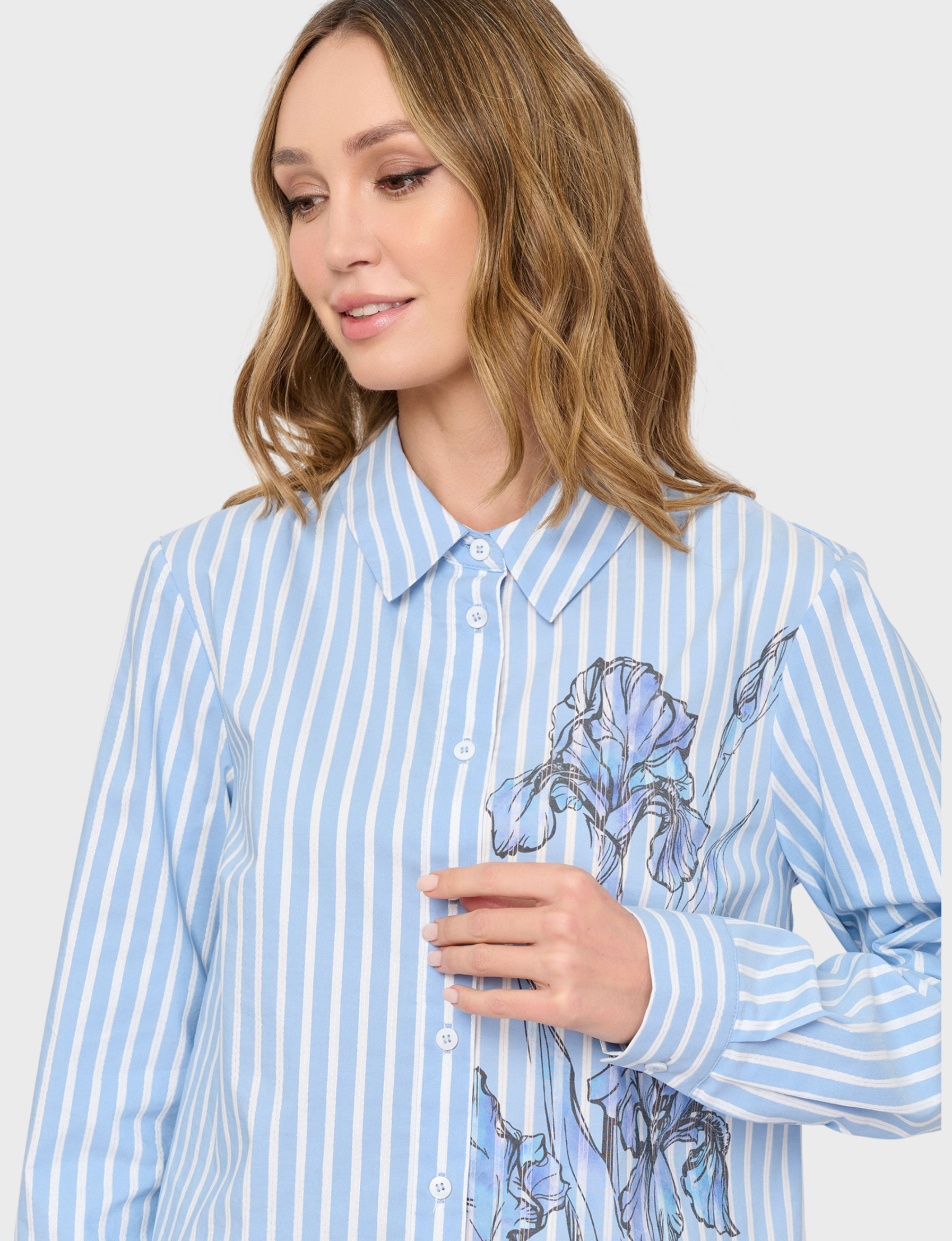 Женская рубашка бренда Franco Vello – Благодаря сочетанию хлопка (67%), полиэстера (30%) и эластана (3%), она дарит комфортное ощущение свободы движения и идеальную посадку. Элегантная голубая гамма подчеркнет индивидуальность и освежит любой образ.