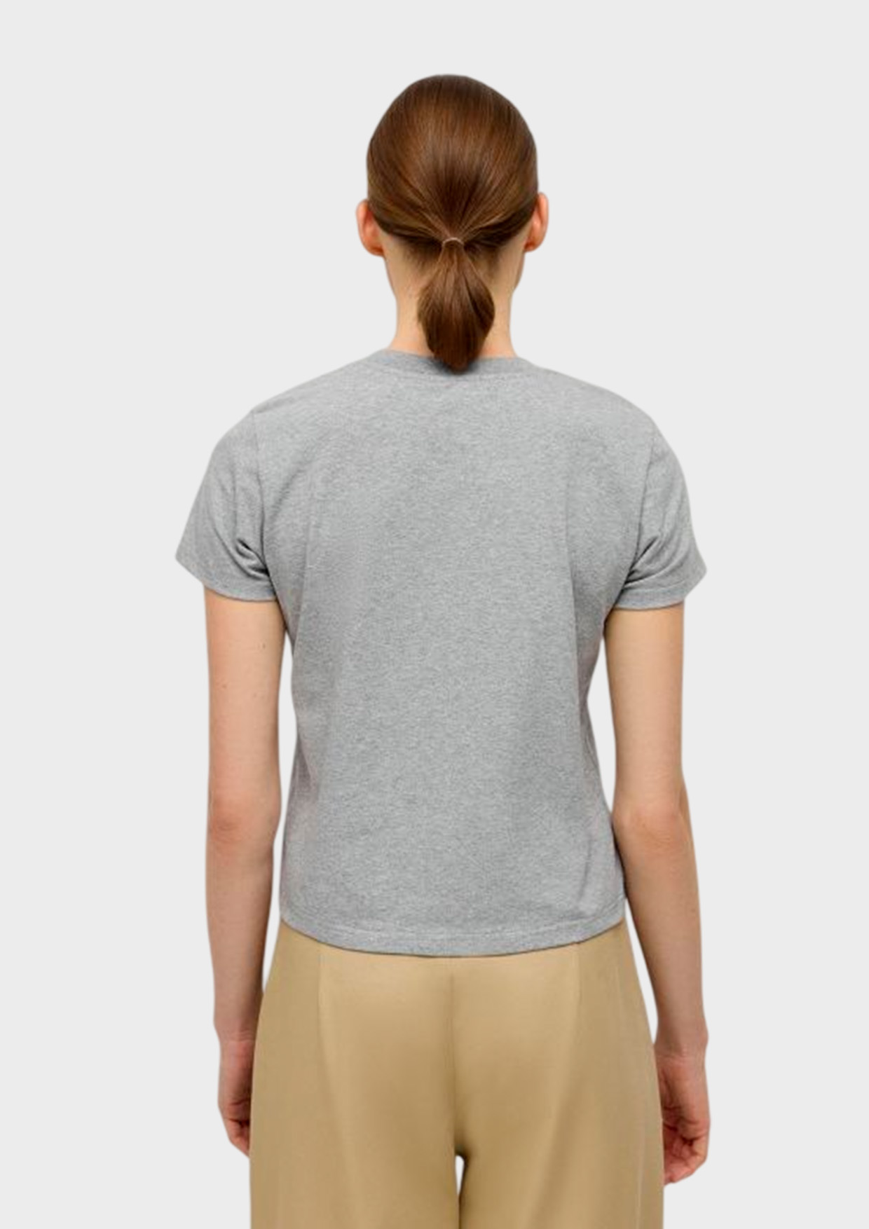 Футболка базового прямого кроя сшита из натурального хлопка. Спереди расположен печатный принт, отражающий тему коллекции SS26, выполненный шелкографией — методом печати высокого качества.