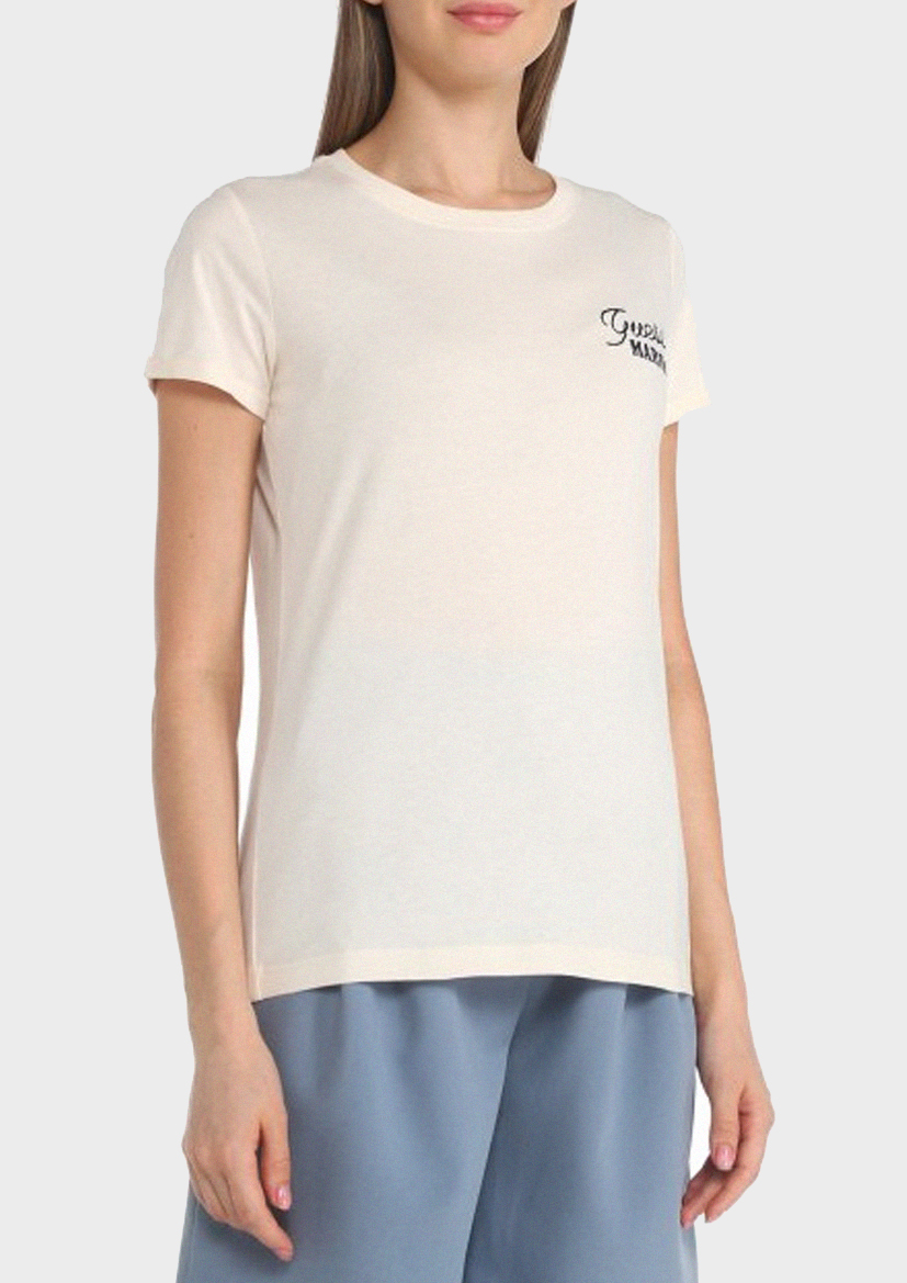 Женская футболка от бренда GUESS выполнена из комфортного сочетания 60% хлопка и 40% модала, обеспечивающего мягкость, приятность к телу и долговечность цвета. Бежевый оттенок универсален и легко сочетается с различными образами. Стильный дизайн подчеркивает индивидуальность и добавляет нотку элегантности в любой лук. Идеальный выбор для тех, кто ценит качество, комфорт и трендовые решения в одежде.