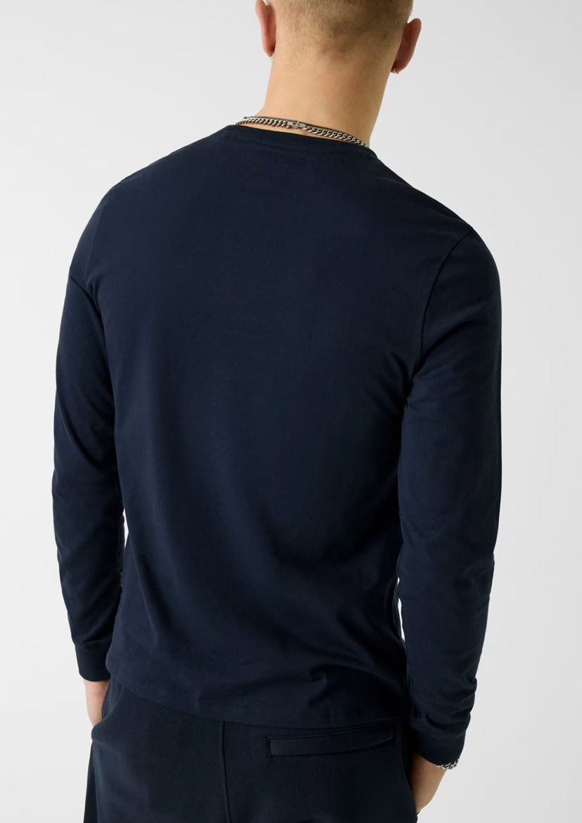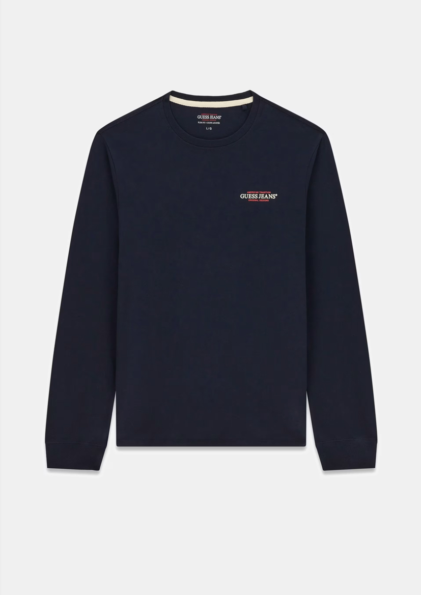 Лонгслив GUESS Jeans – стильный выбор для современного мужчины! Изготовлен из 100%-го хлопка, обеспечивая комфорт при носке. Тёмно-синяя палитра идеально подходит под любой образ и ситуацию. Новая коллекция сезона Весна-Лето 2026 позволит вам всегда оставаться модным и привлекательным. Покупая лонгслив от известного бренда GUESS, вы выбираете качество, стиль и уверенность в себе.