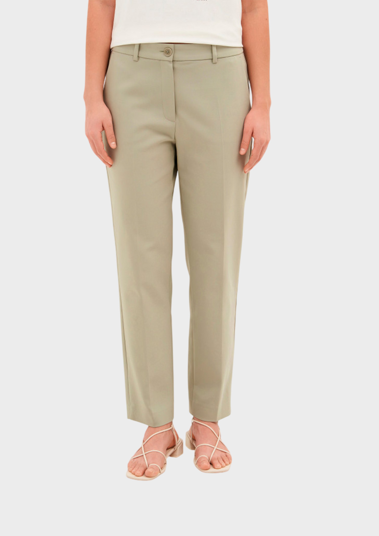 Укороченные зауженные брюки в классическом стиле — это элегантный и универсальный элемент гардероба. Изготовленные из костюмной ткани с добавлением хлопка, они отличаются приятной текстурой и превосходной воздухопроницаемостью, что обеспечивает комфорт в течение всего дня.