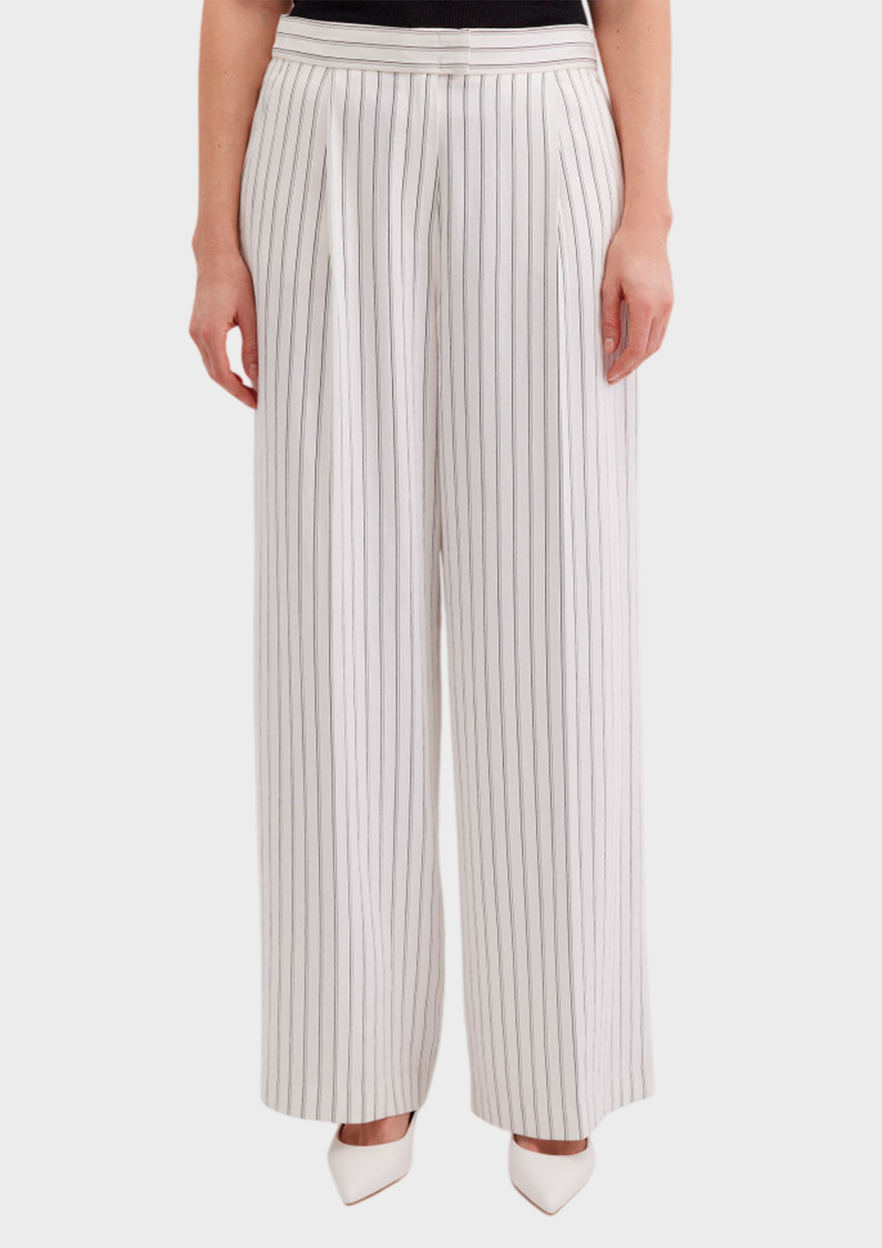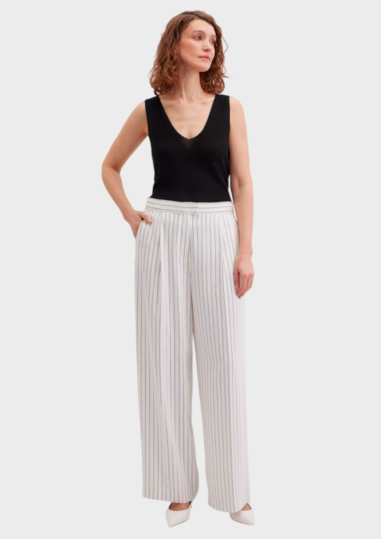Брюки широкие в полоску от GERRY WEBER - это стильное и комфортное решение для современного гардероба. Модель выполнена из приятной на ощупь вискозы с добавлением полиамида и полиэстера, что обеспечивает мягкость, прочность и элегантный внешний вид. Классический белый цвет делает эти брюки универсальным вариантом для создания как деловых, так и повседневных образов.
