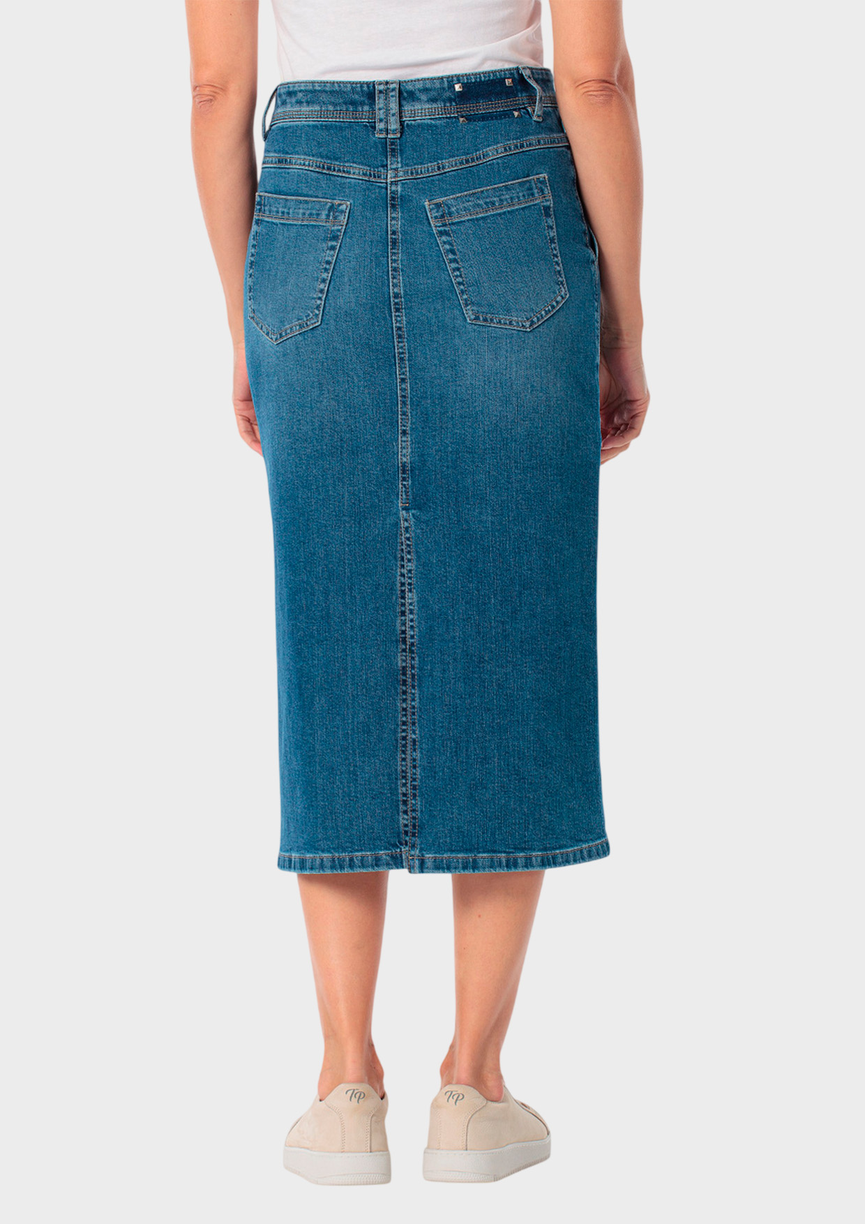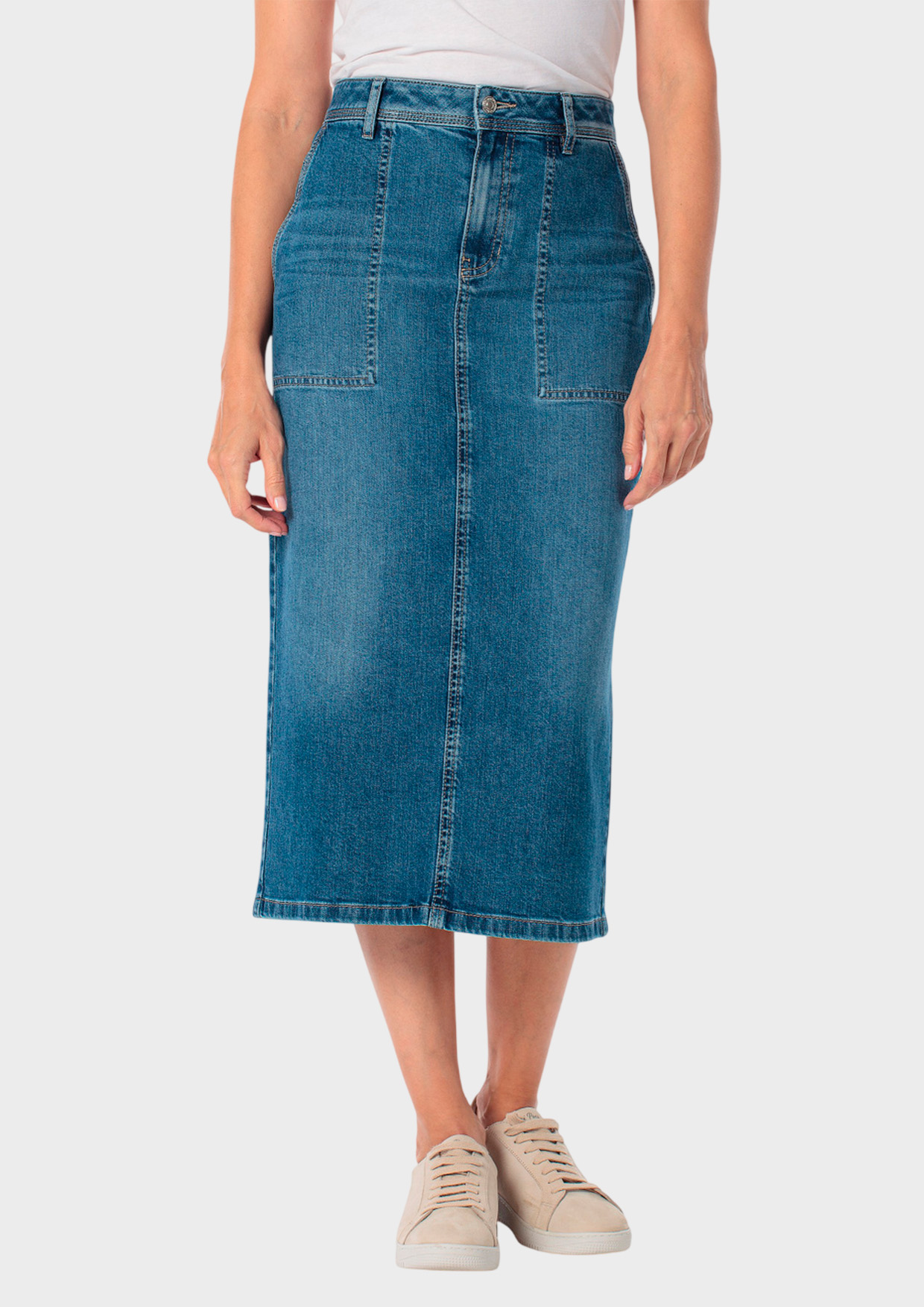 Джинсовая юбка миди выполнена из дышащего хлопка (98%) с добавлением эластана (2%), что обеспечивает комфорт даже в жаркую погоду. Классический синий оттенок универсален и легко сочетается с верхом любого цвета.