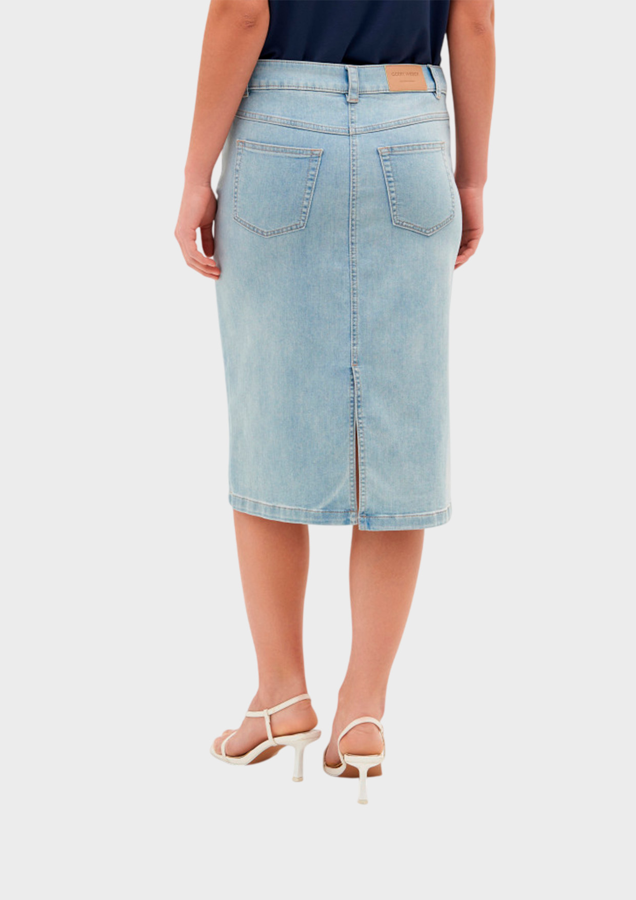 Прямая удлиненная юбка из денима имеет стильный и современный вид. Ее интересный дизайн включает потертости, которые придают образу нотку небрежности и оригинальности. Разрез сзади обеспечивает удобство и свободу движений, делая юбку практичной для повседневной носки.