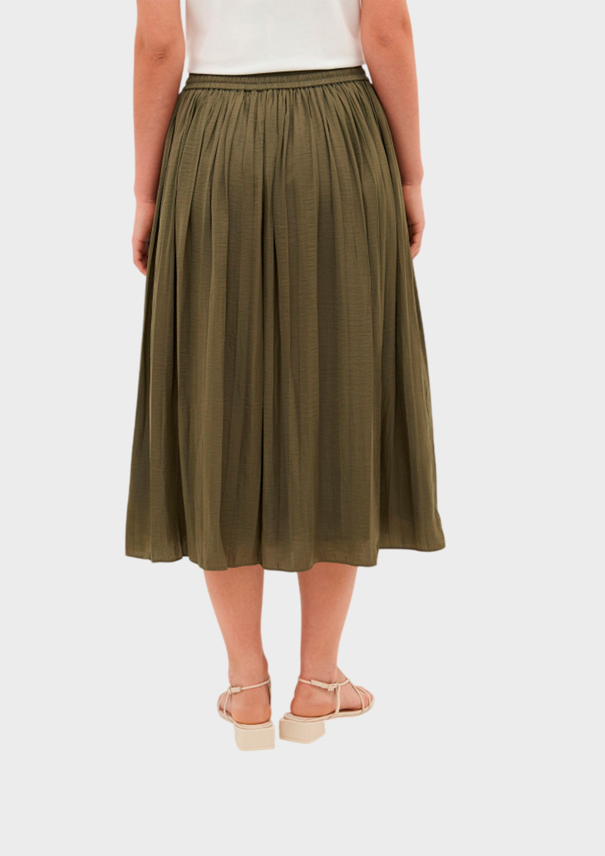 Длинная свободная юбка из фактурной жатой ткани создает легкий и воздушный силуэт, идеально подходящий для тёплых дней. Эластичный пояс обеспечивает комфорт и отличную посадку, позволяя свободно двигаться. Подкладка обеспечивает дополнительный уровень удобства, предотвращая прилипания ткани к телу.