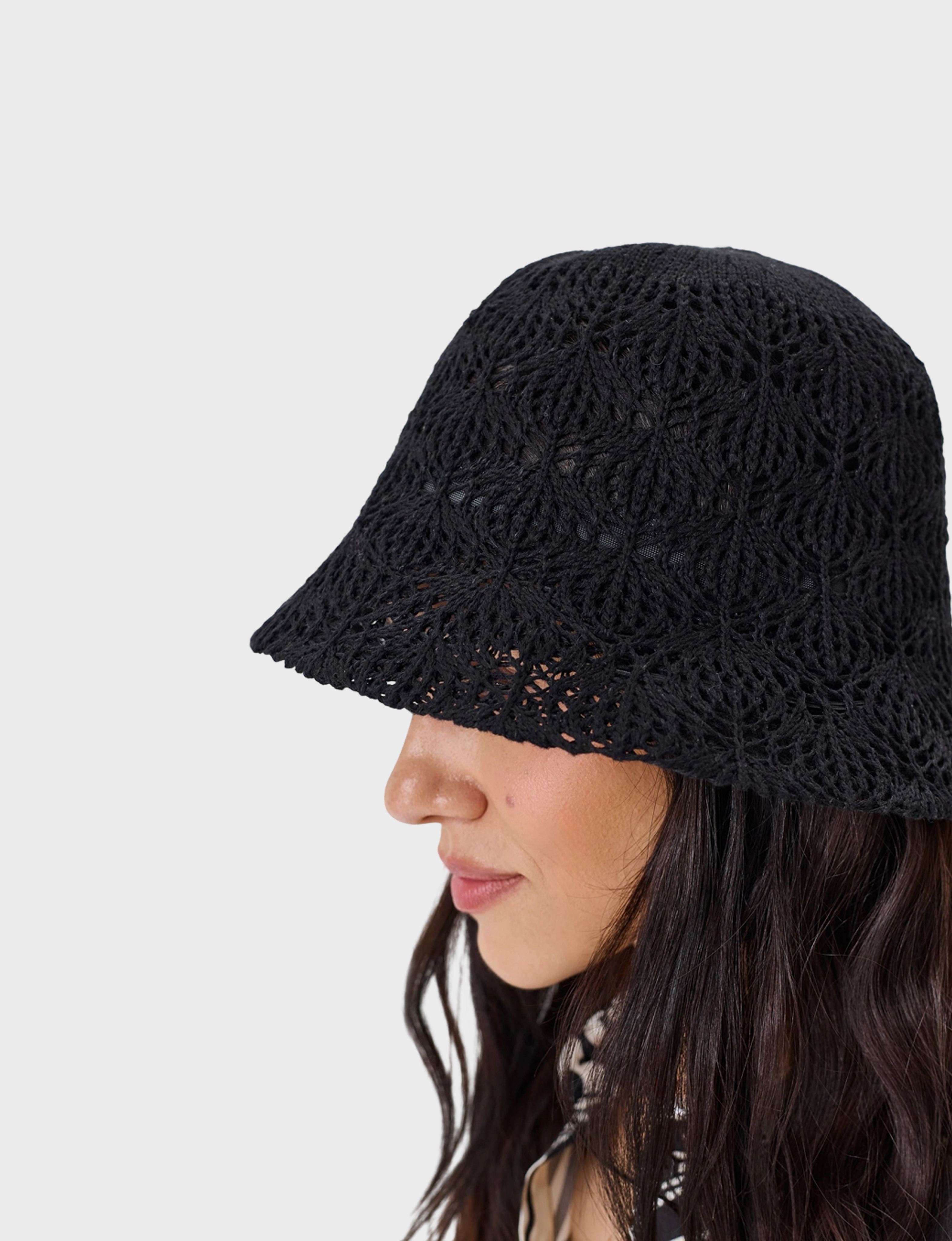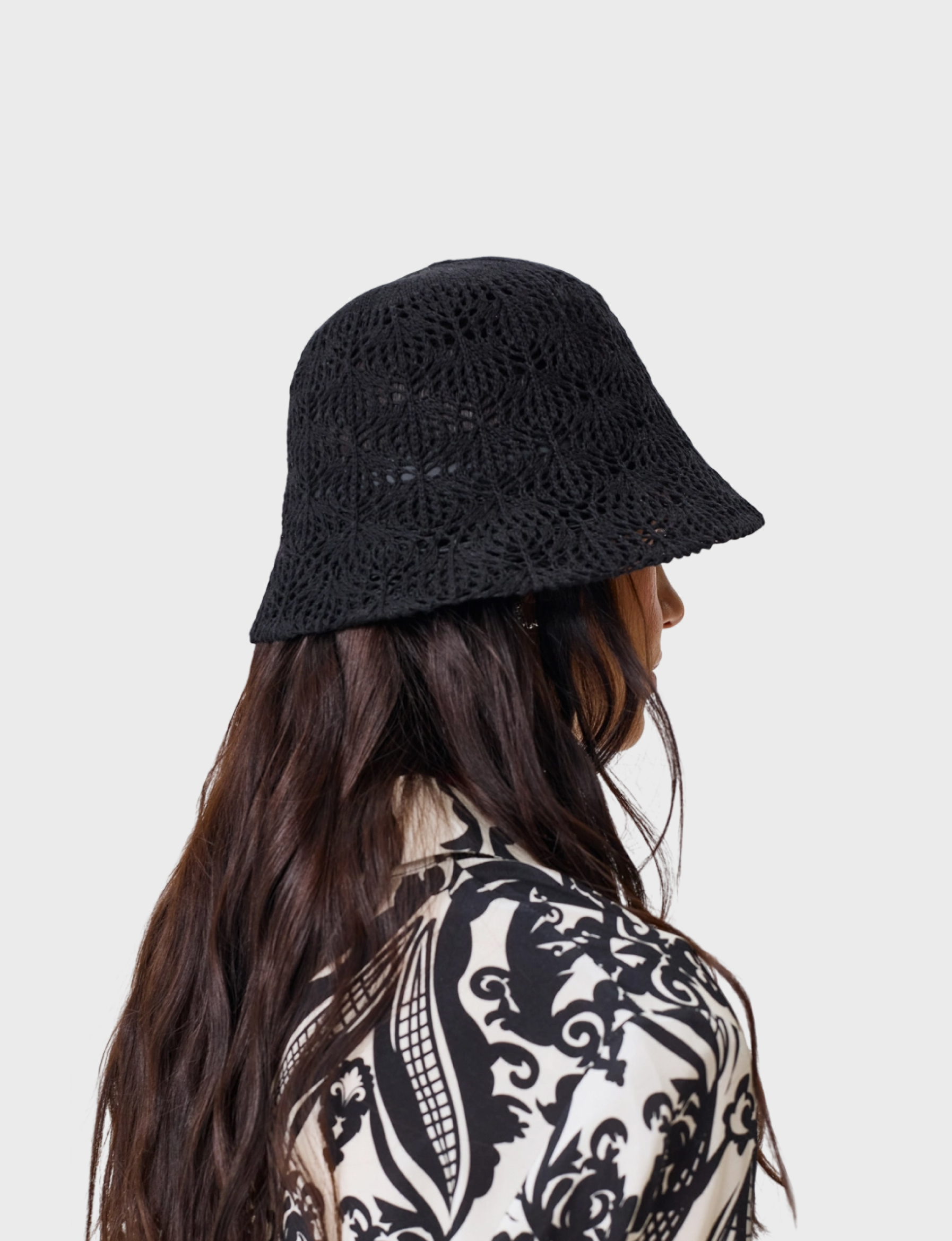 Хлопковая ажурная панама в морском стиле. Закругленная тулья и короткие опущенные поля.