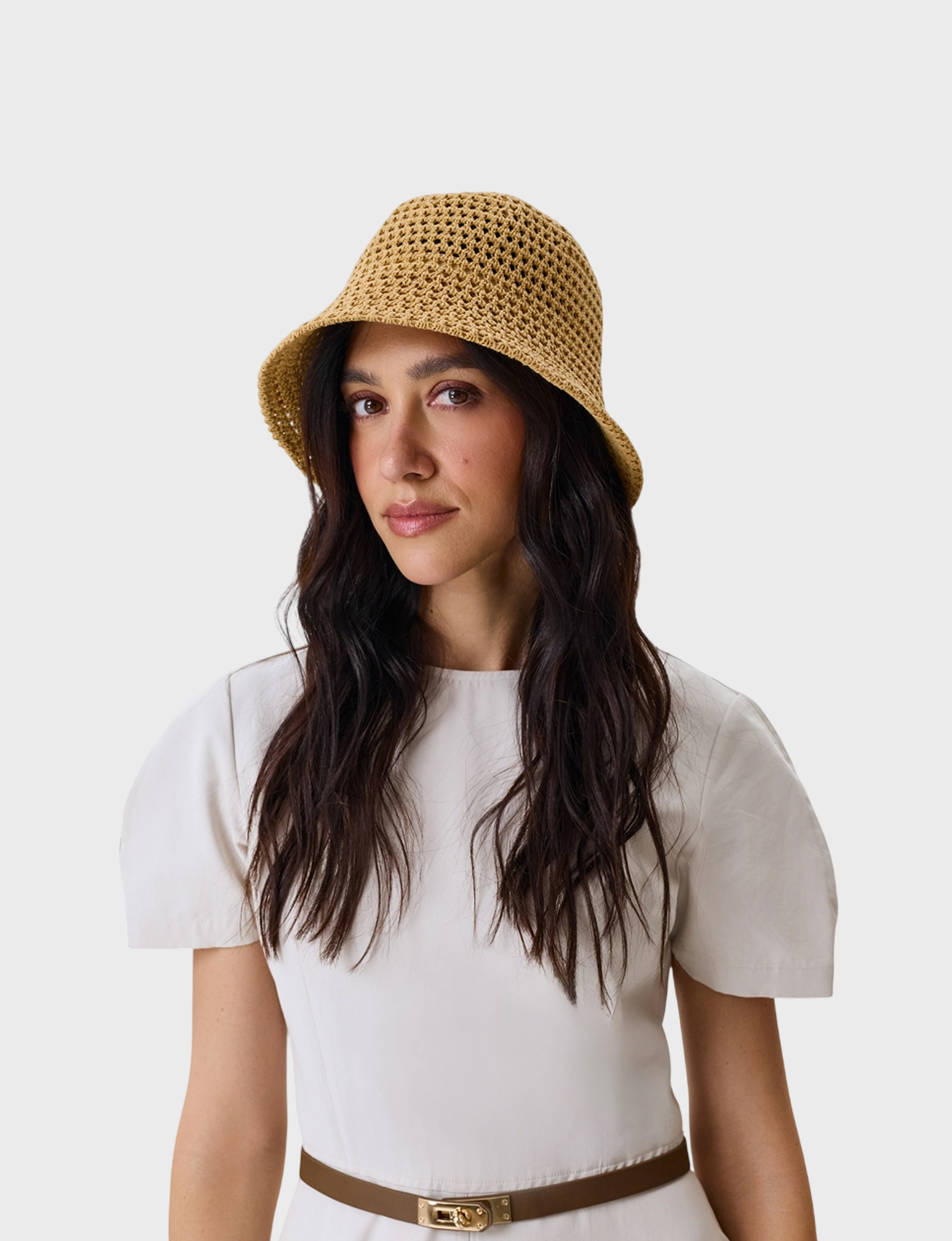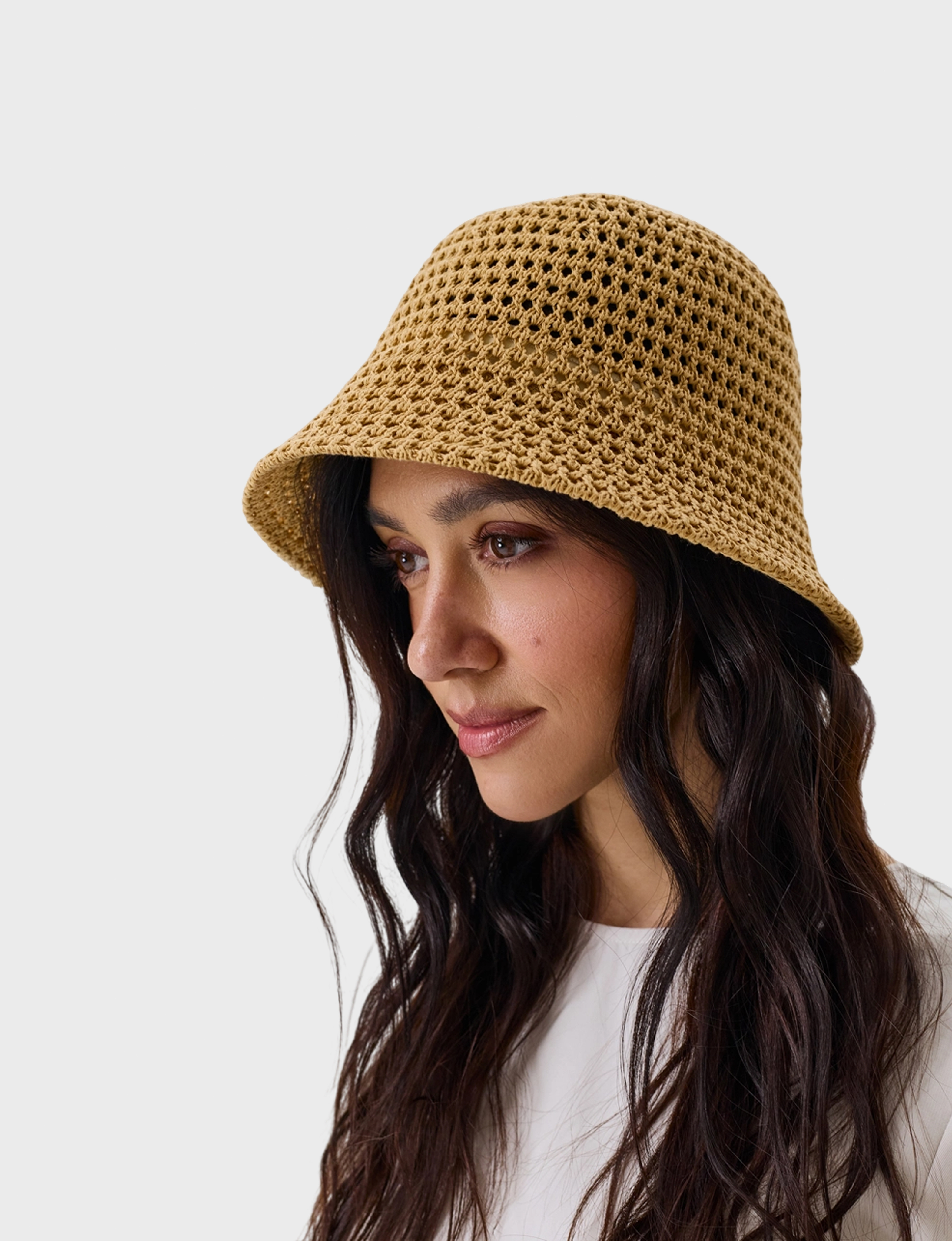 Классическая плетеная панама в морском стиле. Закругленная тулья и короткие опущенные поля.