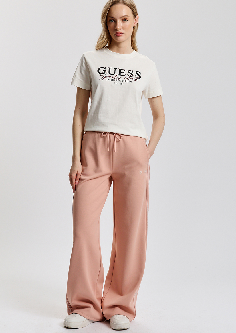 Спортивные брюки Guess – новинка сезона! В розовом оттенке подчеркнут вашу индивидуальность и подарят комфорт даже в активном ритме дня. Идеальны как для тренировок, так и повседневного ношения. Благодаря составу из 86% полиэстера, 8% вискозы и 6% эластана отлично тянутся, сохраняют форму и цвет после стирки.