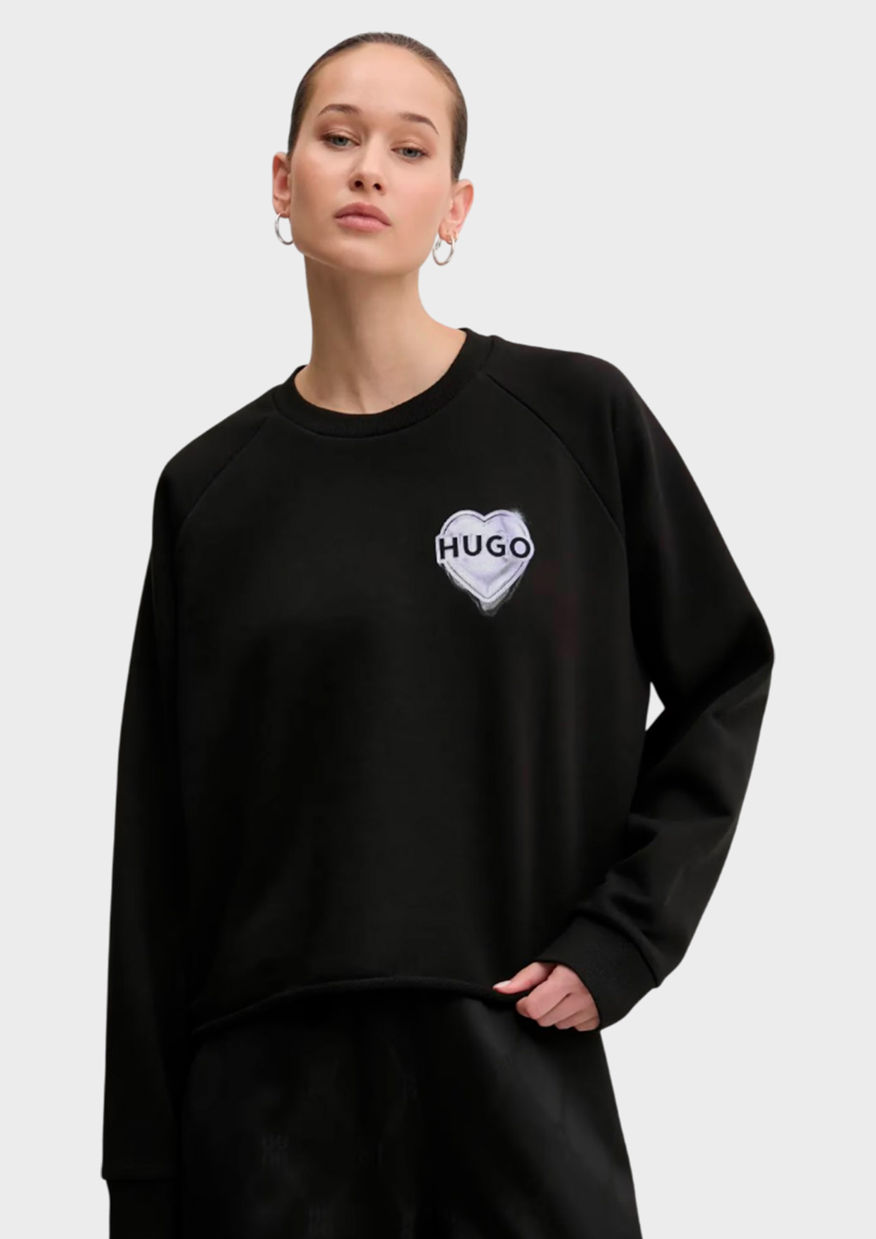 Женский свитшот HUGO черного цвета из 100%-го хлопка – это сочетание комфорта и стильного внешнего вида. Идеально подходит как для повседневных образов, так и в качестве базового элемента гардероба.
