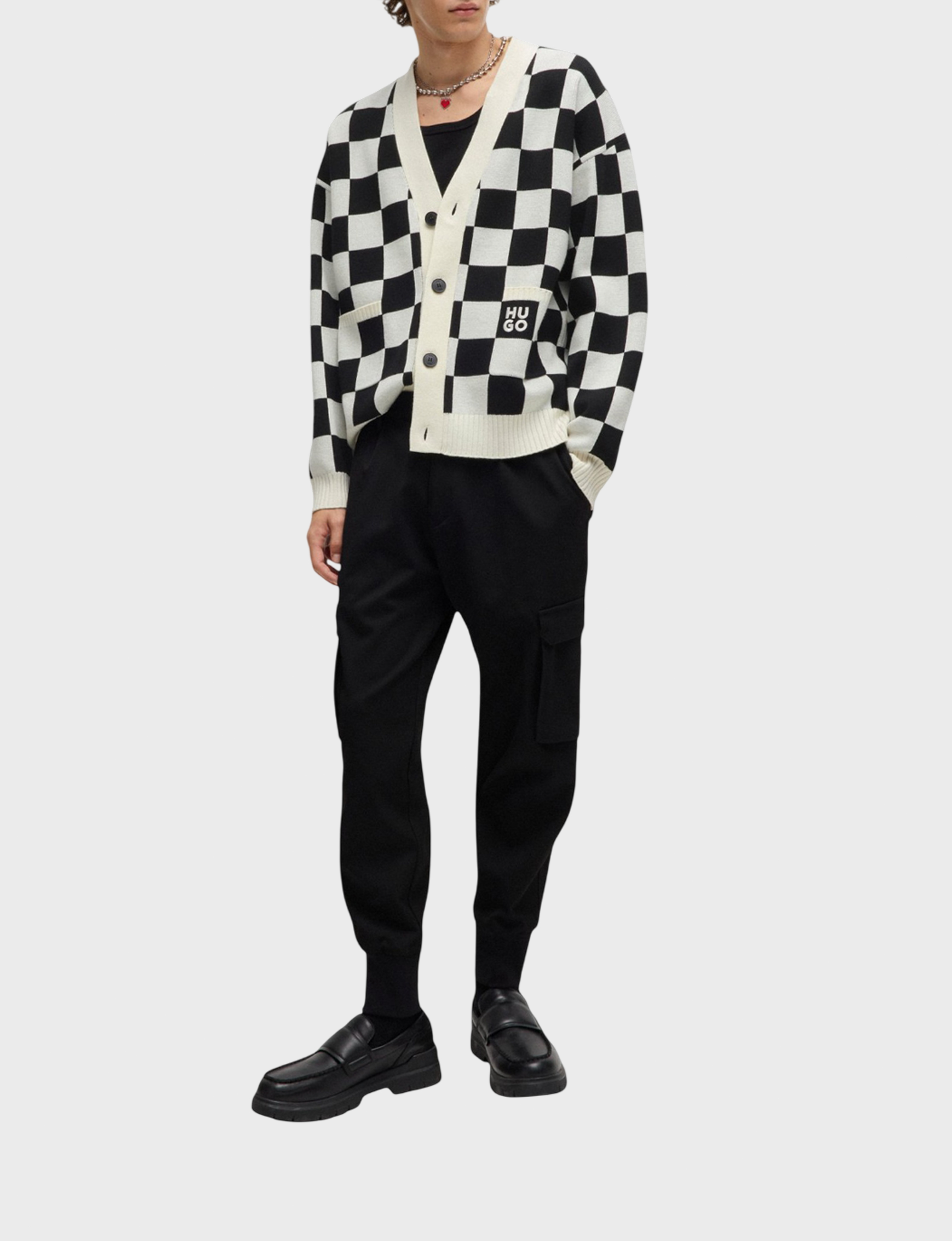 Мужской кардиган HUGO – базовая вещь молочного и черного цвета из коллекций джемперов и кардиганов бренда. Подходит для ежедневной носки благодаря сочетанию шерсти (50%) и полиакрила (50%), обеспечивающему комфорт и практичность.