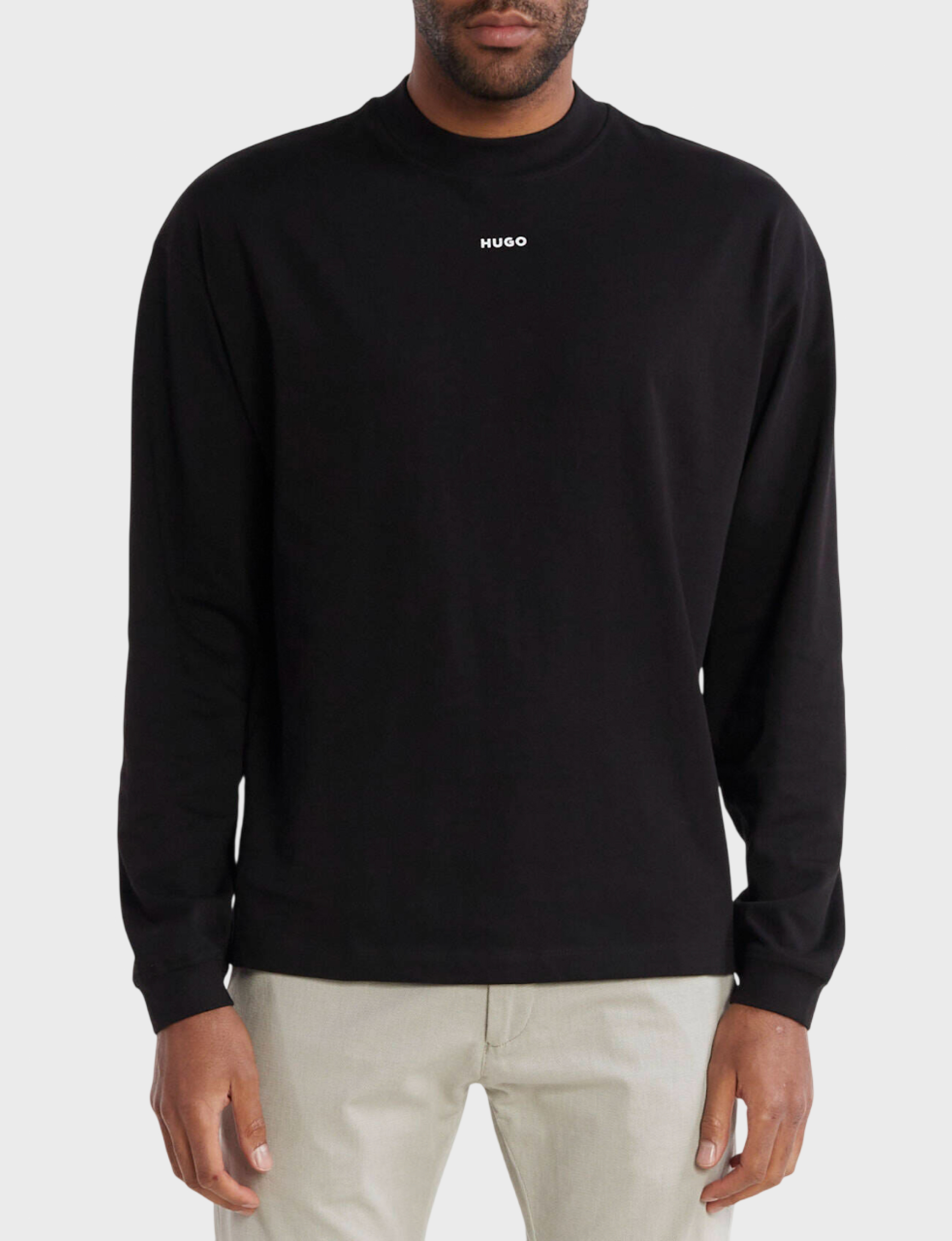 Мужской лонгслив от бренда HUGO – стильный базовый элемент гардероба из 100%-го хлопка в классическом черном цвете! Комфорт при носке обеспечен благодаря качественному материалу и продуманной выкройке.