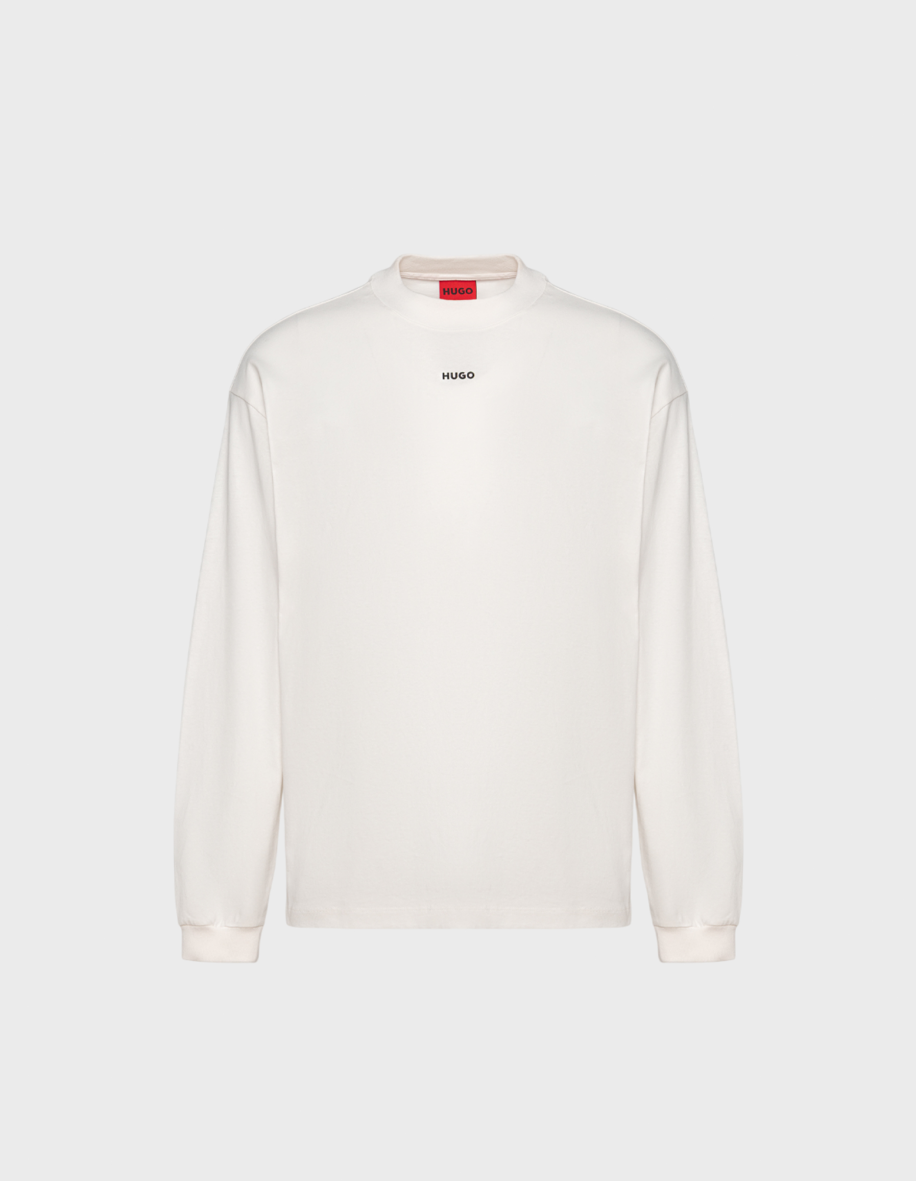 Мужской лонгслив HUGO молочного цвета – идеальный базовый элемент гардероба из мягкого 100% хлопка! Подходит для ежедневного ношения благодаря комфорту и стилю. Идеально сочетается как с джинсами, так и с брюками, подчеркивая ваш уникальный стиль.
